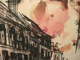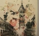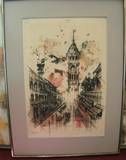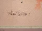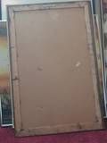 Approx Meas: 33"x24" Framed Inside Opening 16"x25" This painting was made in a unique way. This artist would clean his brushes by wiping them on the white surface. When it was full, and he had some time from his other artwork, he would then encorporate the wipings into a nice painting as you see here. All the Black foreground detail was done last. He signs his name backwards as well. A well known artist in Los Angeles in the 60's and up. Bob Barnett. This is an oversize package so please email if you need a shipping quote.