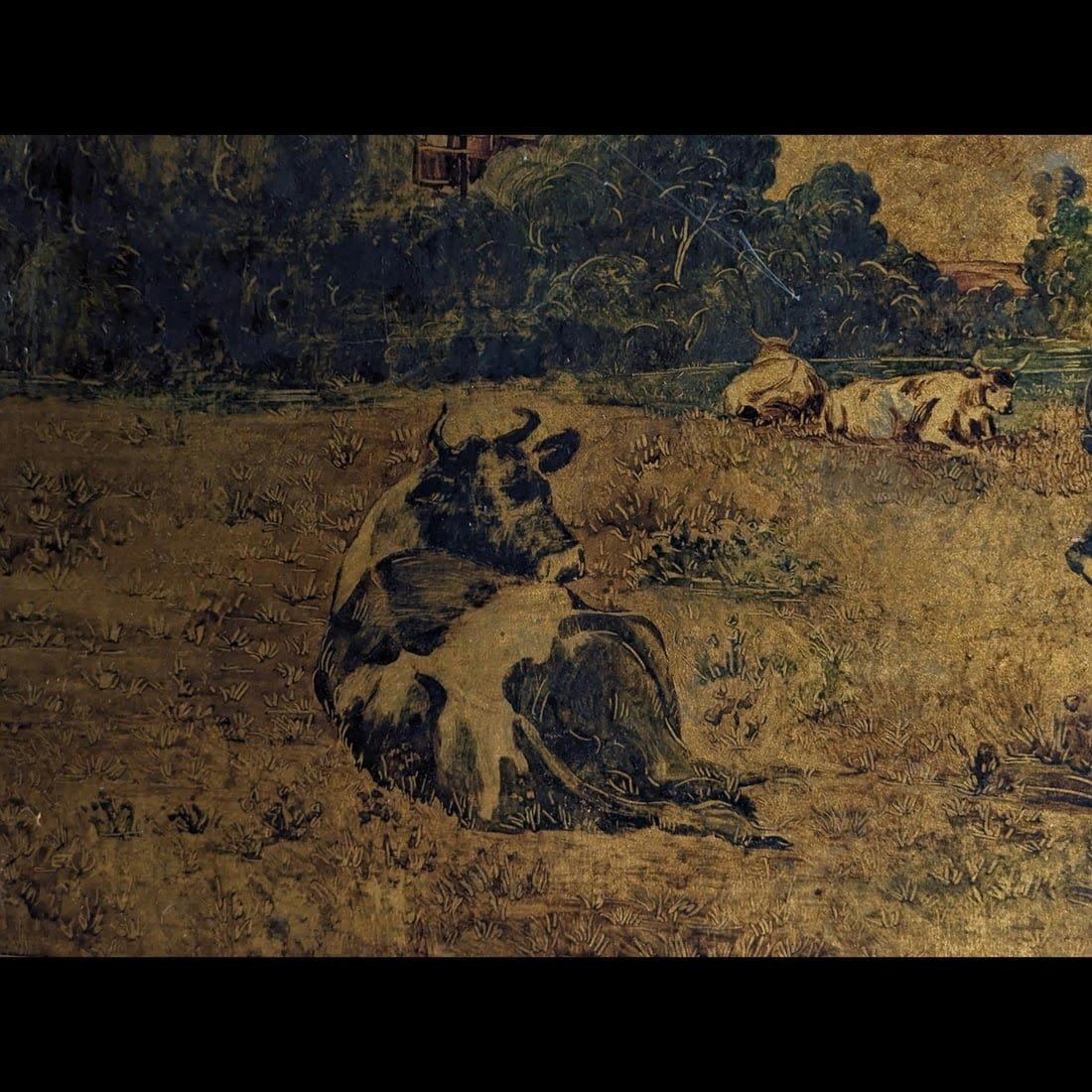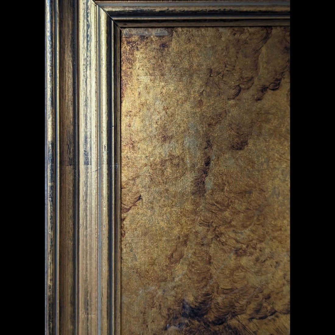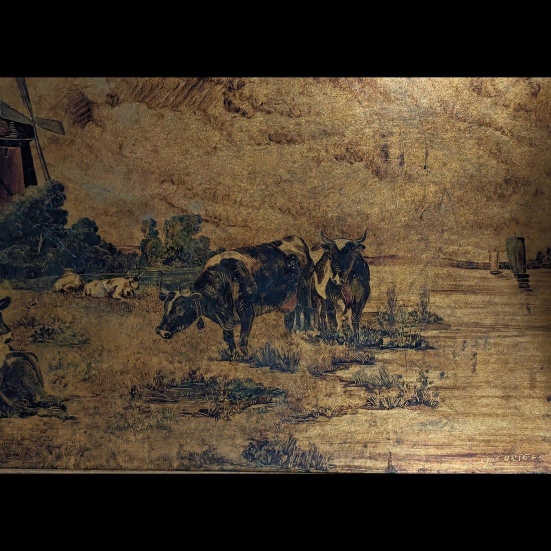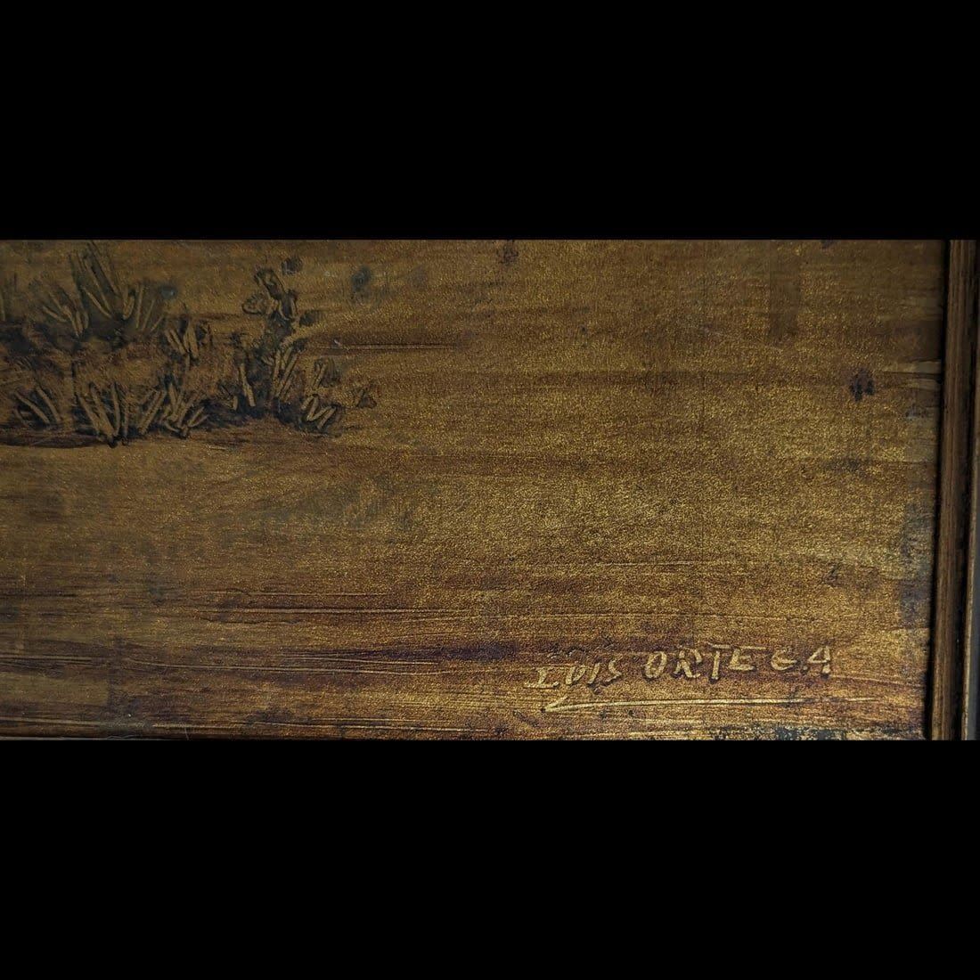 Large Signed Luis Ortega Mixed Media On Gilt Board Scenic Painting. Measures approx. 29" X 37", Sight measures approx. 22 1/2" X 31 1/2".