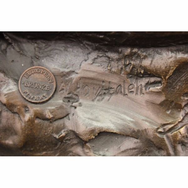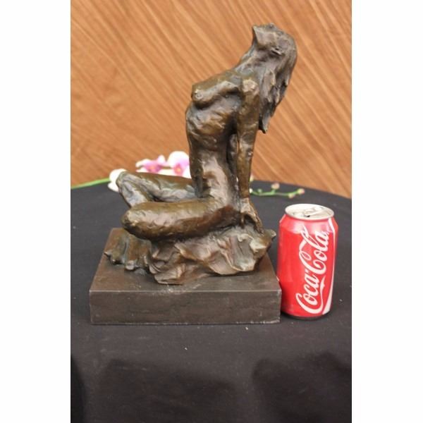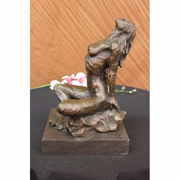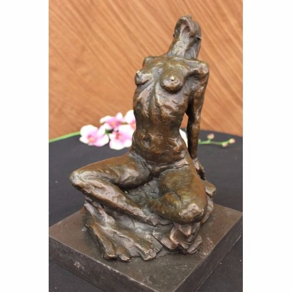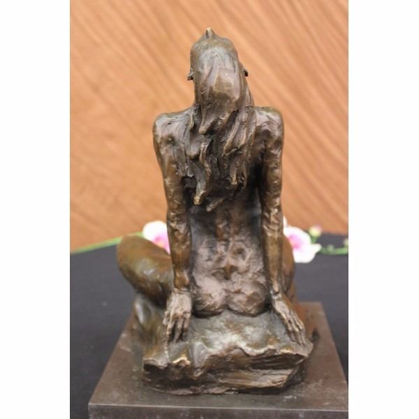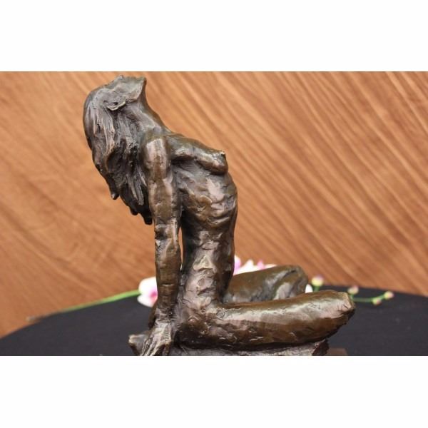 She sits crossed legged in lotus position, her head thrown back and her back is arched in pleasure. The nude woman places her hands behind for support. The rawness of this sculpture is heightened by the ragged stone-like surface. This carnal and rugged sculpture was crafted using the lost wax method. It rests on a black marble base. It is signed Aldo Vitaleh. Condition: This sculpture is in perfect condition. Bronze Dimensions with Marble Base:Height 13" x Width 8" Marble Dimensions: 8" X 8 1/2". Height without base: 12" Weight : 20 LBS Inventory : 53Y1746335