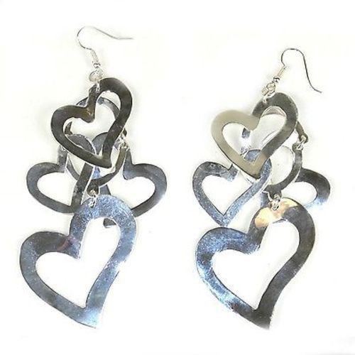 Large Silverplated Heart Cluster Earrings - Artisana **|**|** Women artisans in Mexico make these large silverplated polished earrings that feature hearts cascading from one's ears. Hanging from hypoallergenic hooks #MJSELH-229087