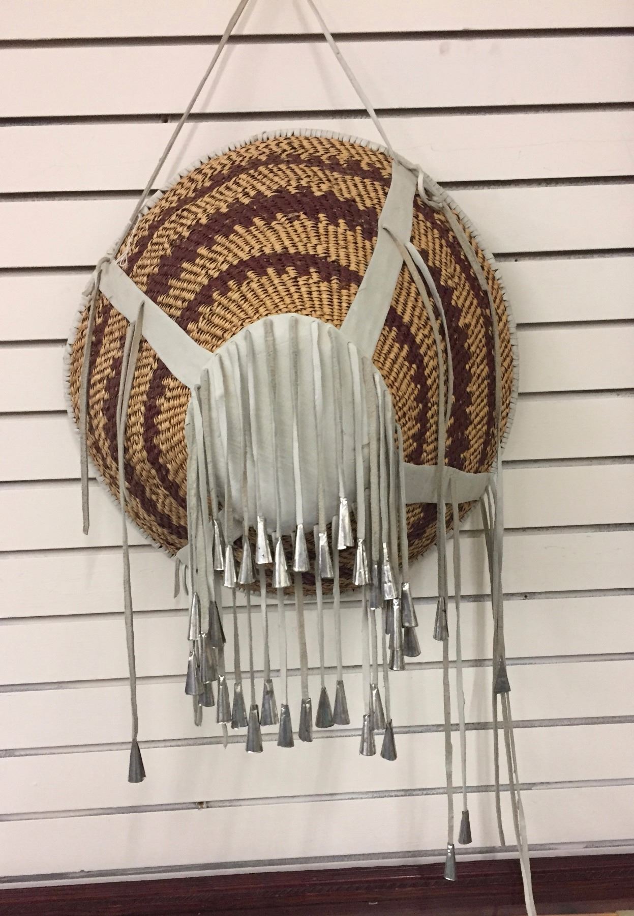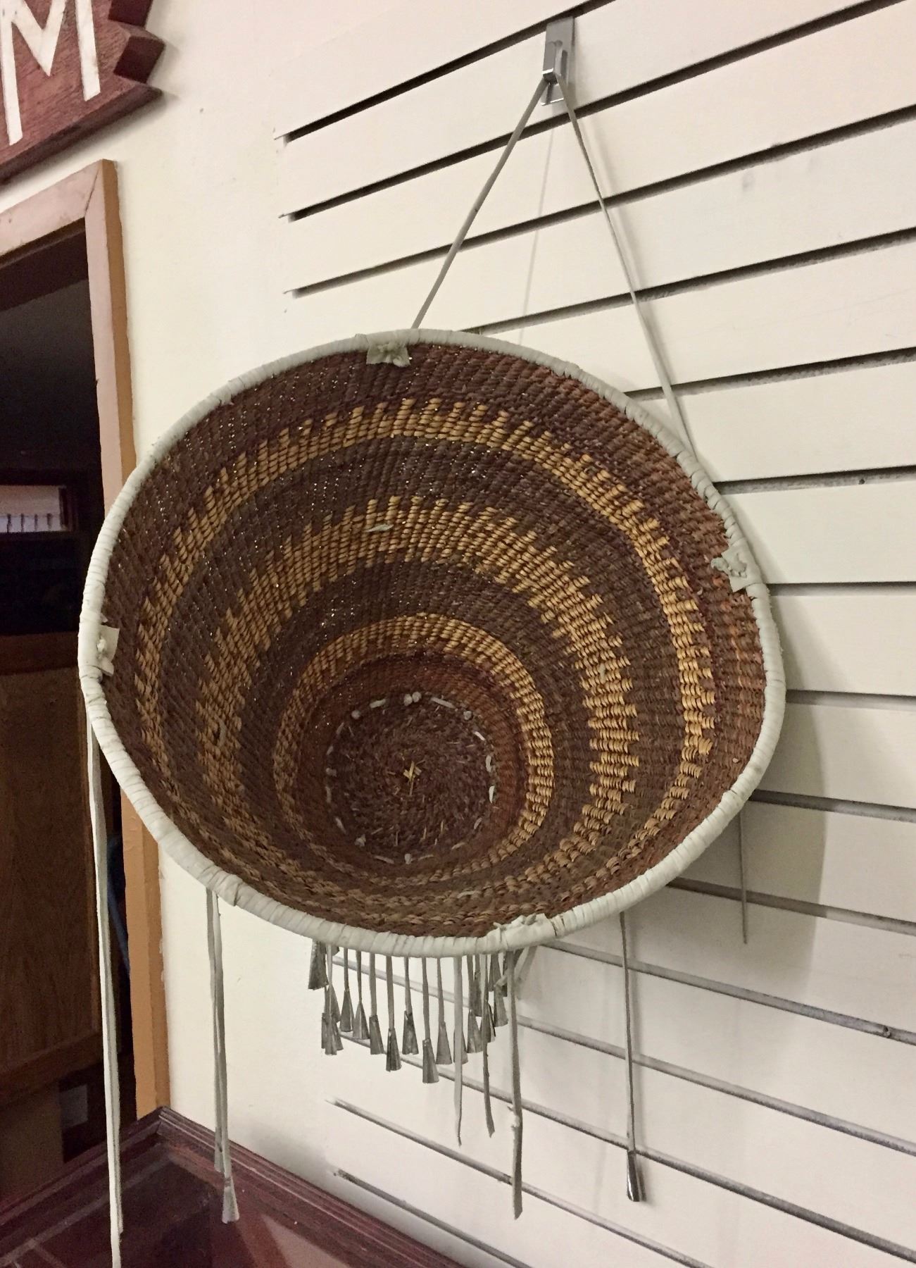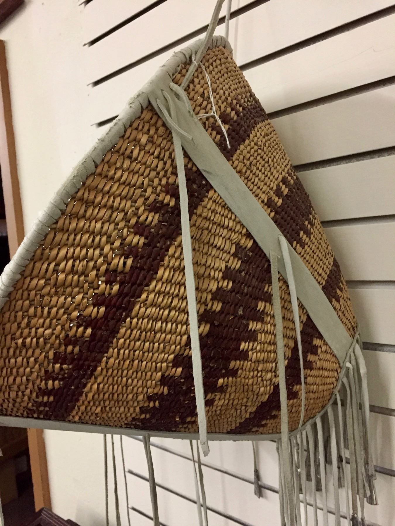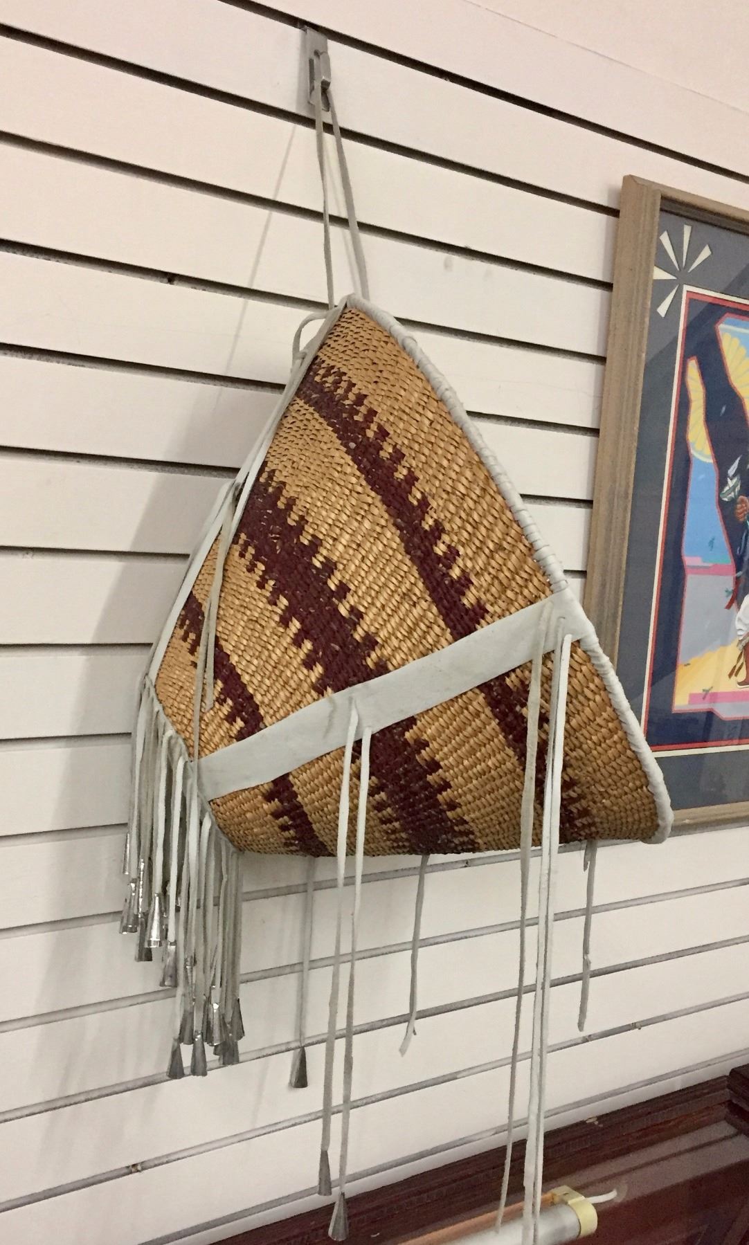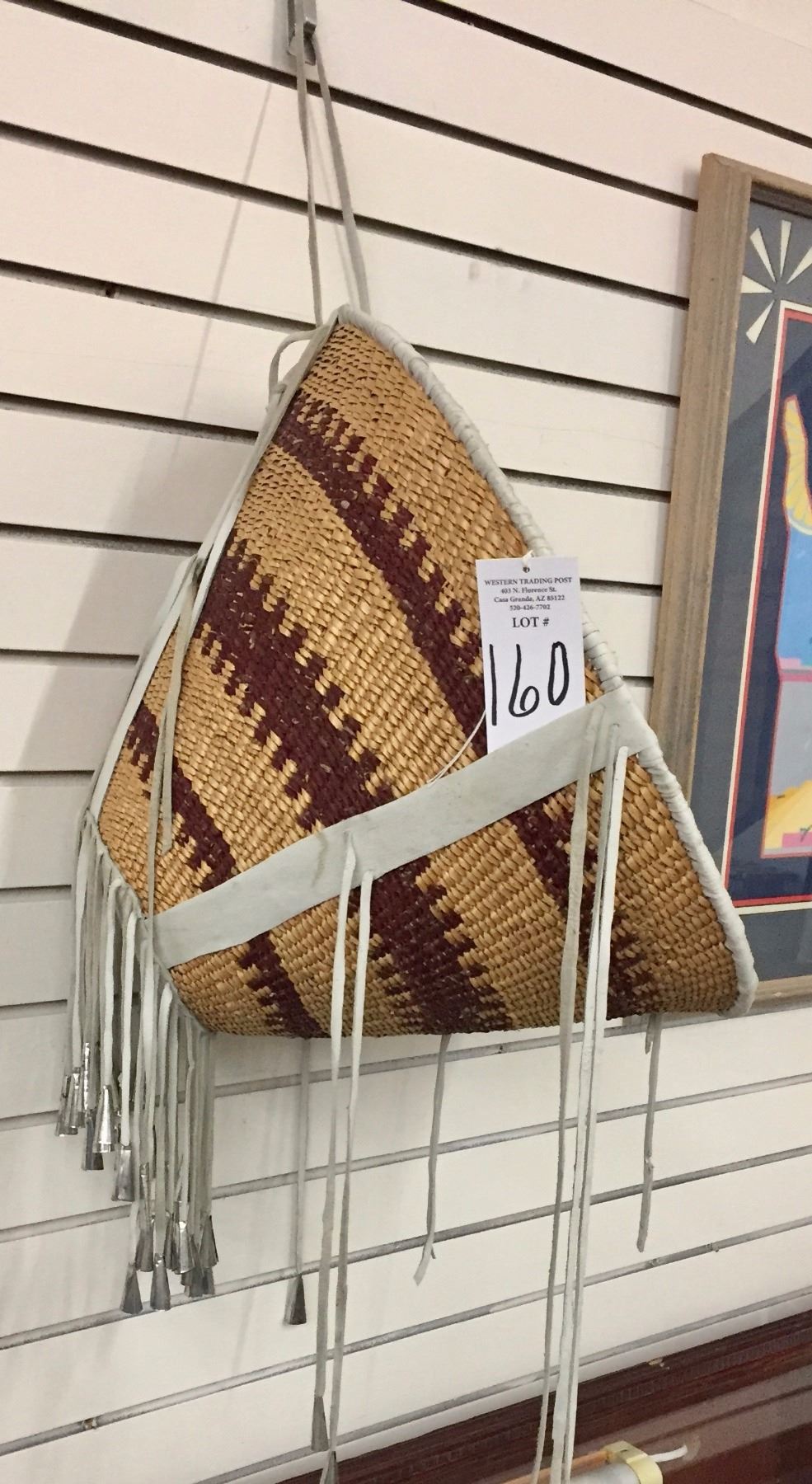 Description: Large Apache Burden Basket. Maker: Unknown Apache weaver. Approx. Age: Circa 1980s vintage. Size: Measures 13” deep x 19” wide. Condition: Pretty good for its age, normal wear expected. Please look closely at the pictures - they are an important part of our description. Shipping: There will be a $10 handling / packaging fee for shipping this lot. The actual cost of postage will be added on top of that.