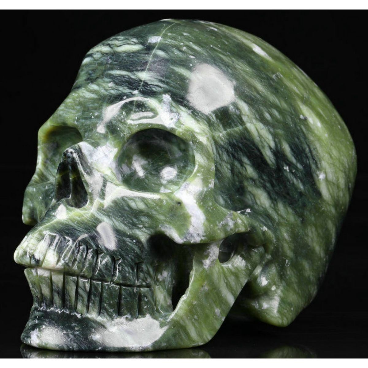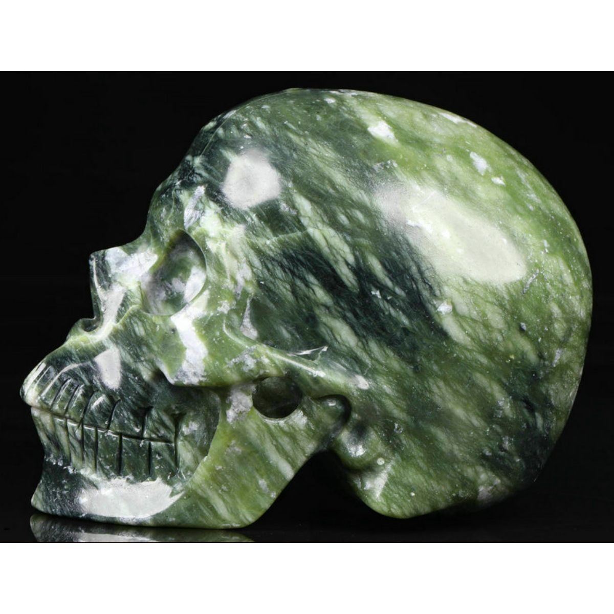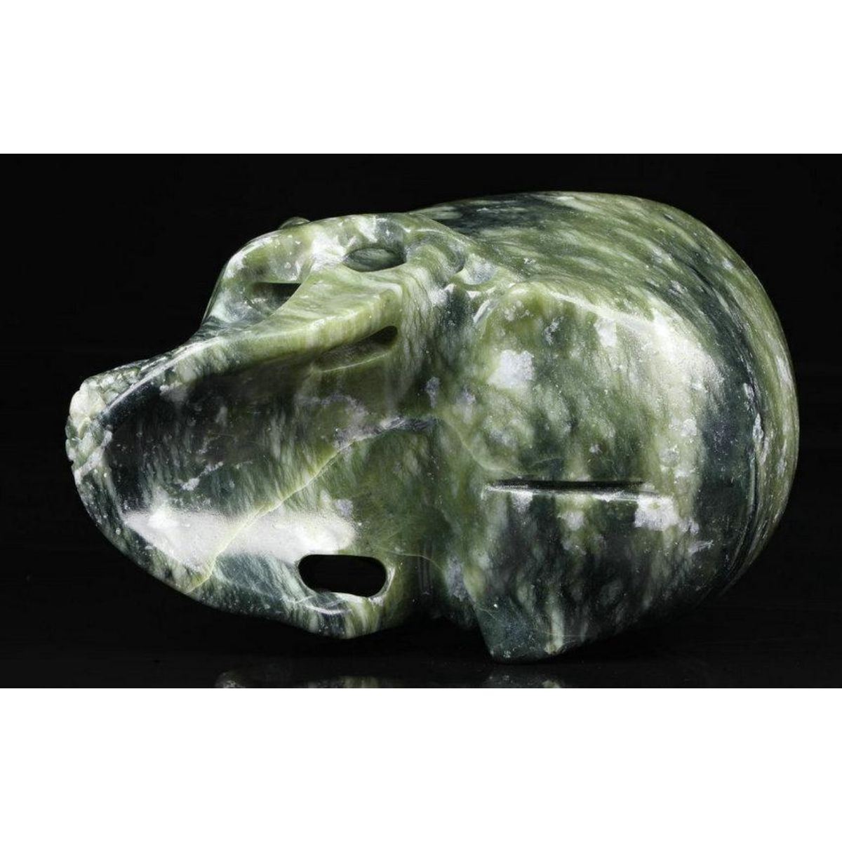 Large size, fantastic Xiuyan Jade carved skeleton skull. 5.0" x 3.7" x 3.1" ( 127 x 95 x 79mm ). 2.5 lb ( 1170g ).