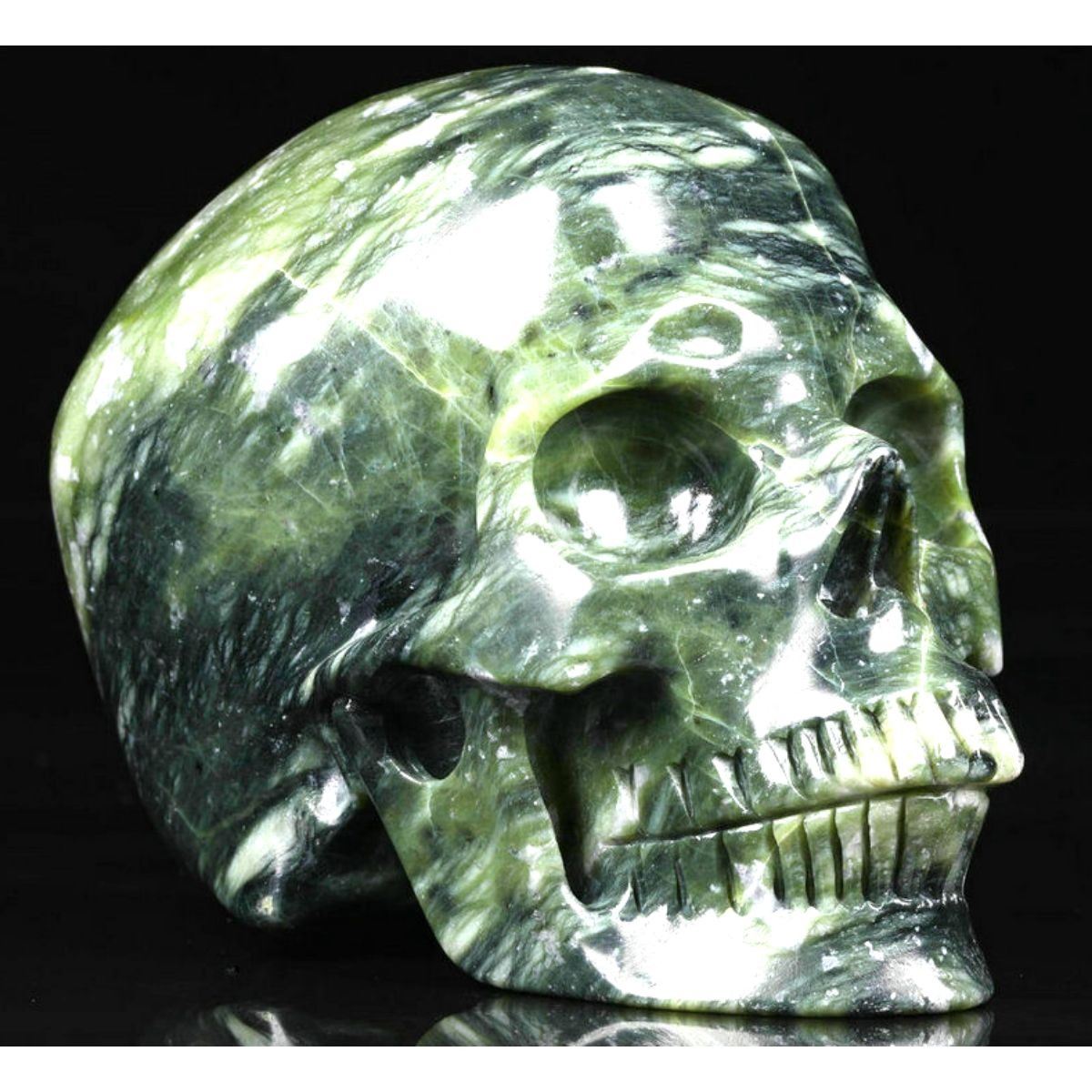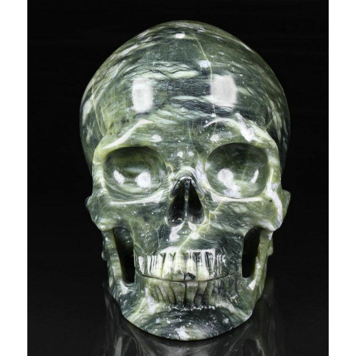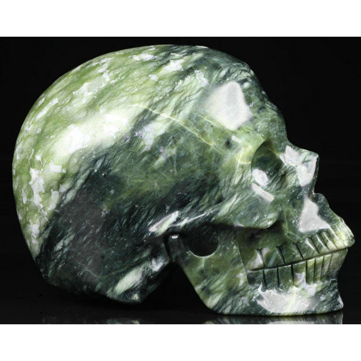 Large size, fantastic Xiuyan Jade carved skeleton skull. 5.0" x 3.7" x 3.1" ( 127 x 95 x 79mm ). 2.5 lb ( 1170g ).