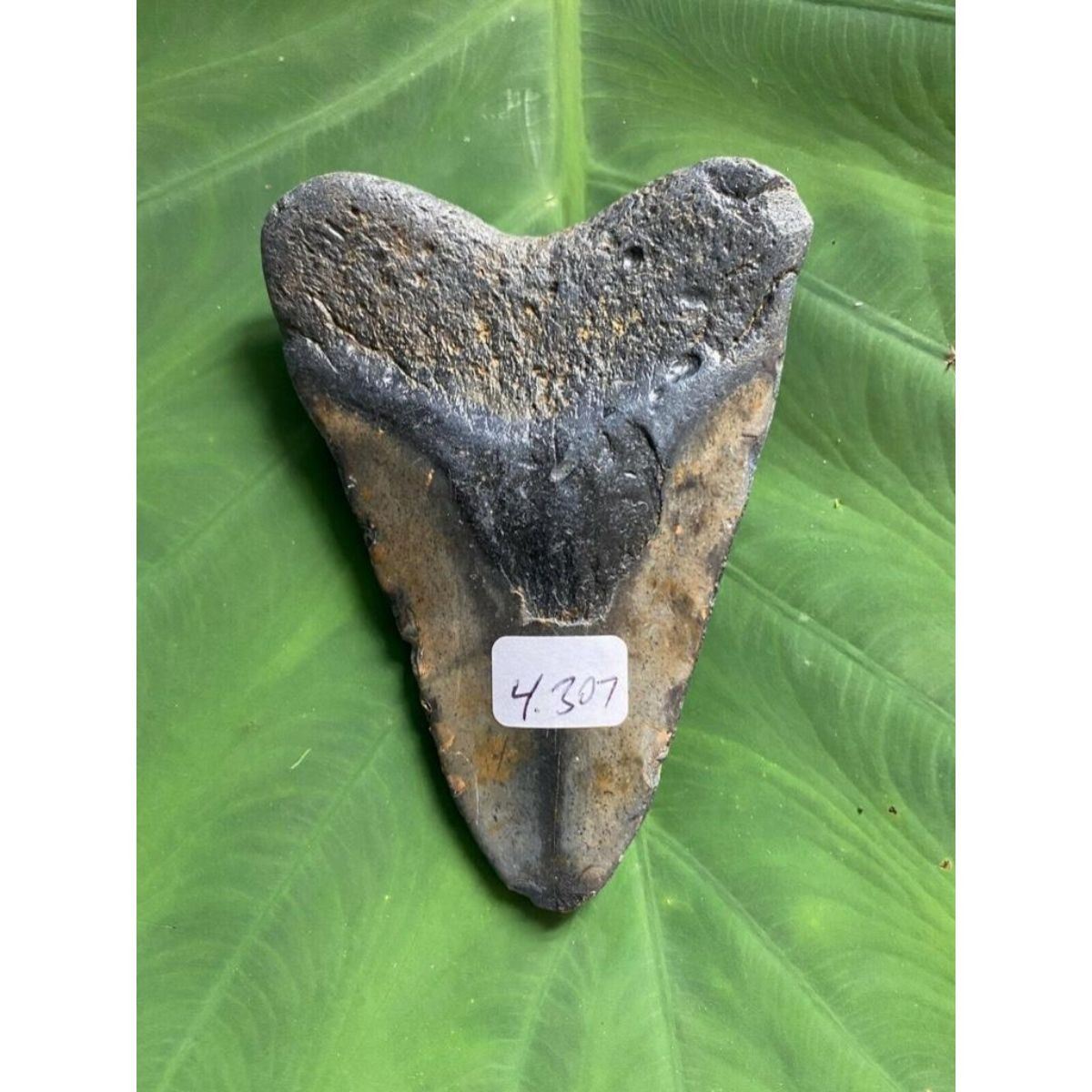 Large size, Prehistoric 4.307" specimen, Megalodon Shark's Tooth Fossil. Beautiful, natural, unrestored, diver direct specimen, found near Wilmington, North Carolina.Â
