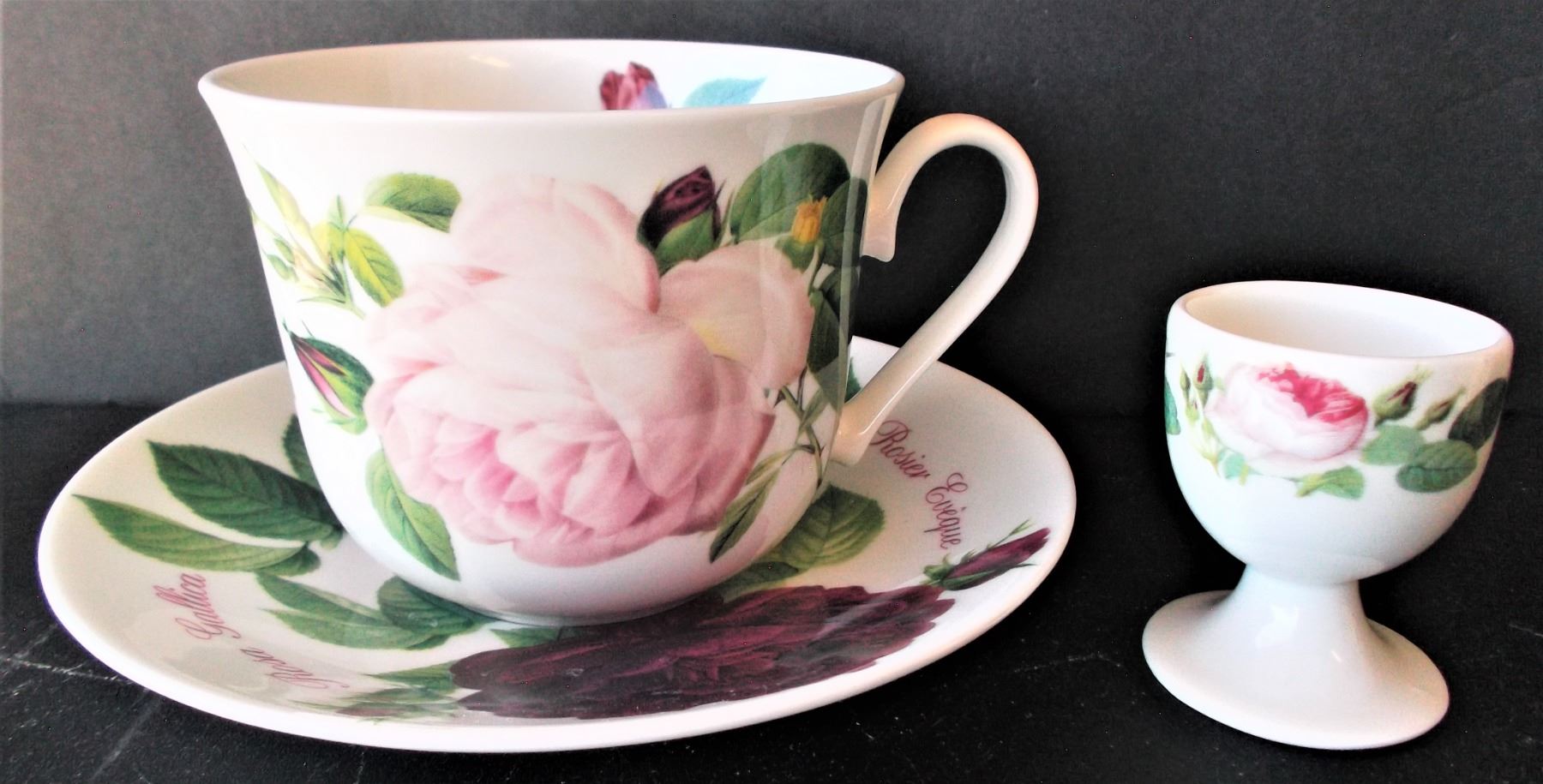 Large Size Tea Cup with Saucer includes Matching Egg Cup - Roy Kirkham Fine Bone China 2006