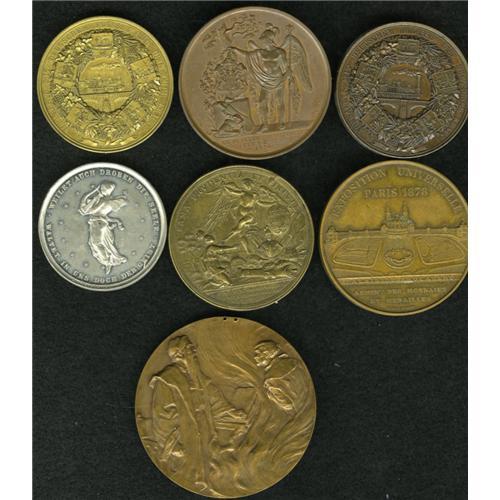 <B>Large-Sized European Medals, </B></I> (2) German 1844 railroad medals in bronze and gilt bronze; bronze Goethe with bust of the author; France, Paris Exhibition 1878; Germany, Schiller white metal 1859 with angel on reverse; Germany bronze 1834 plus Friedrich the Great 1757. Grades range from VF to AU. Some beautifully engraved and preserved medals here.<B>Sold as is, no return lot.</B></I><BR><BR><b>Shipping:</b> Coin/Currency (<a target="_blank" href="http://www.heritageauctions.com/common/shipping.php">view shipping information</a>)