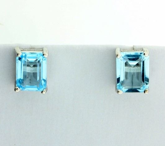 The emerald cut gemstones are set in platinum over sterling silver. 2.2g