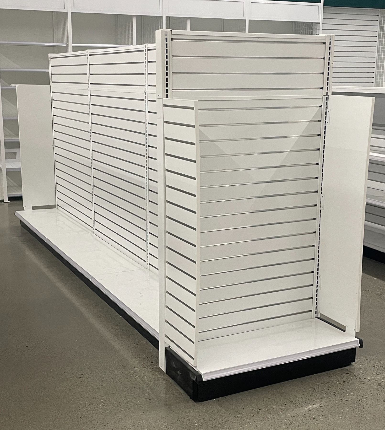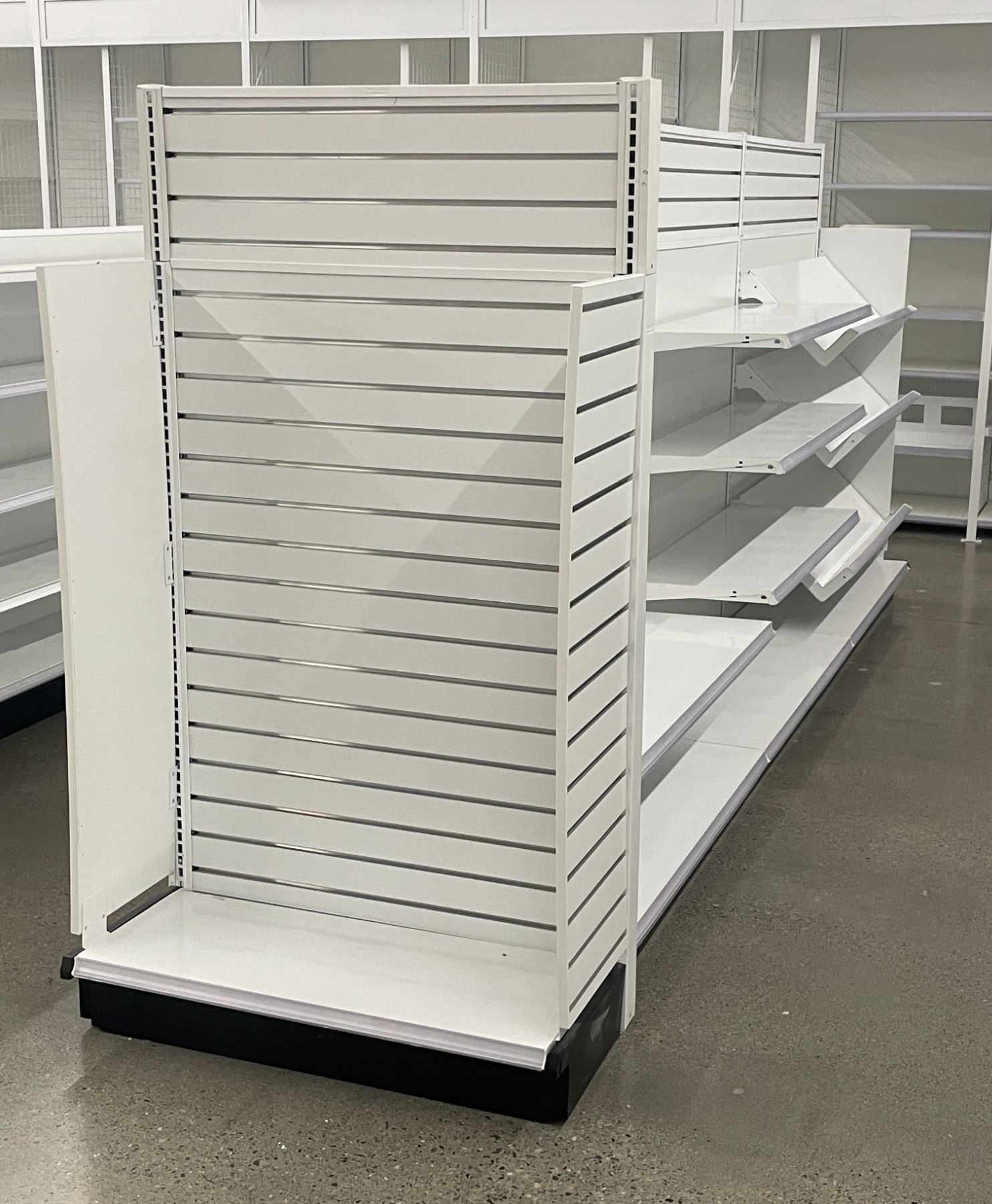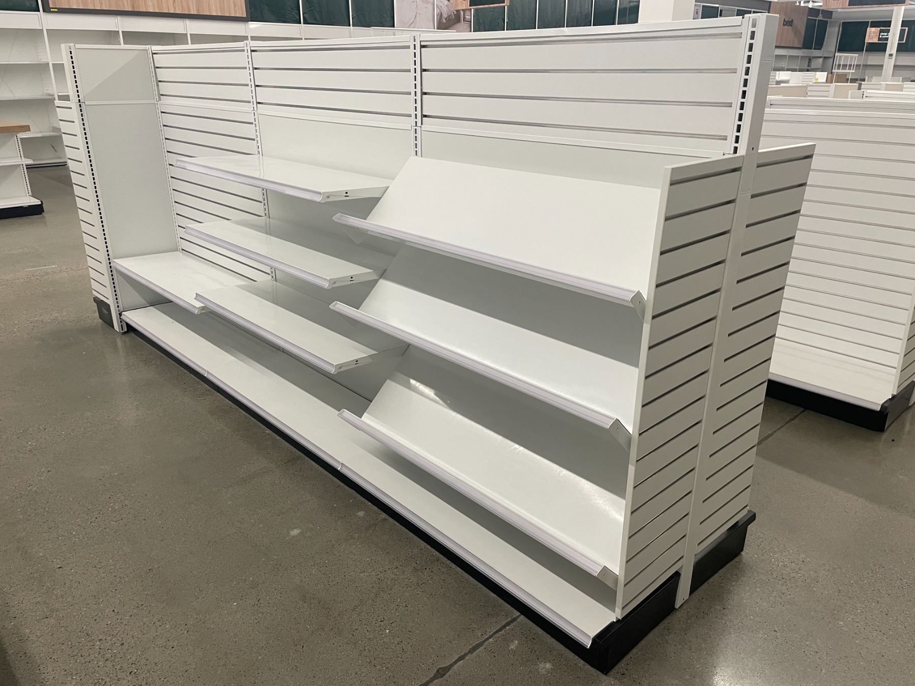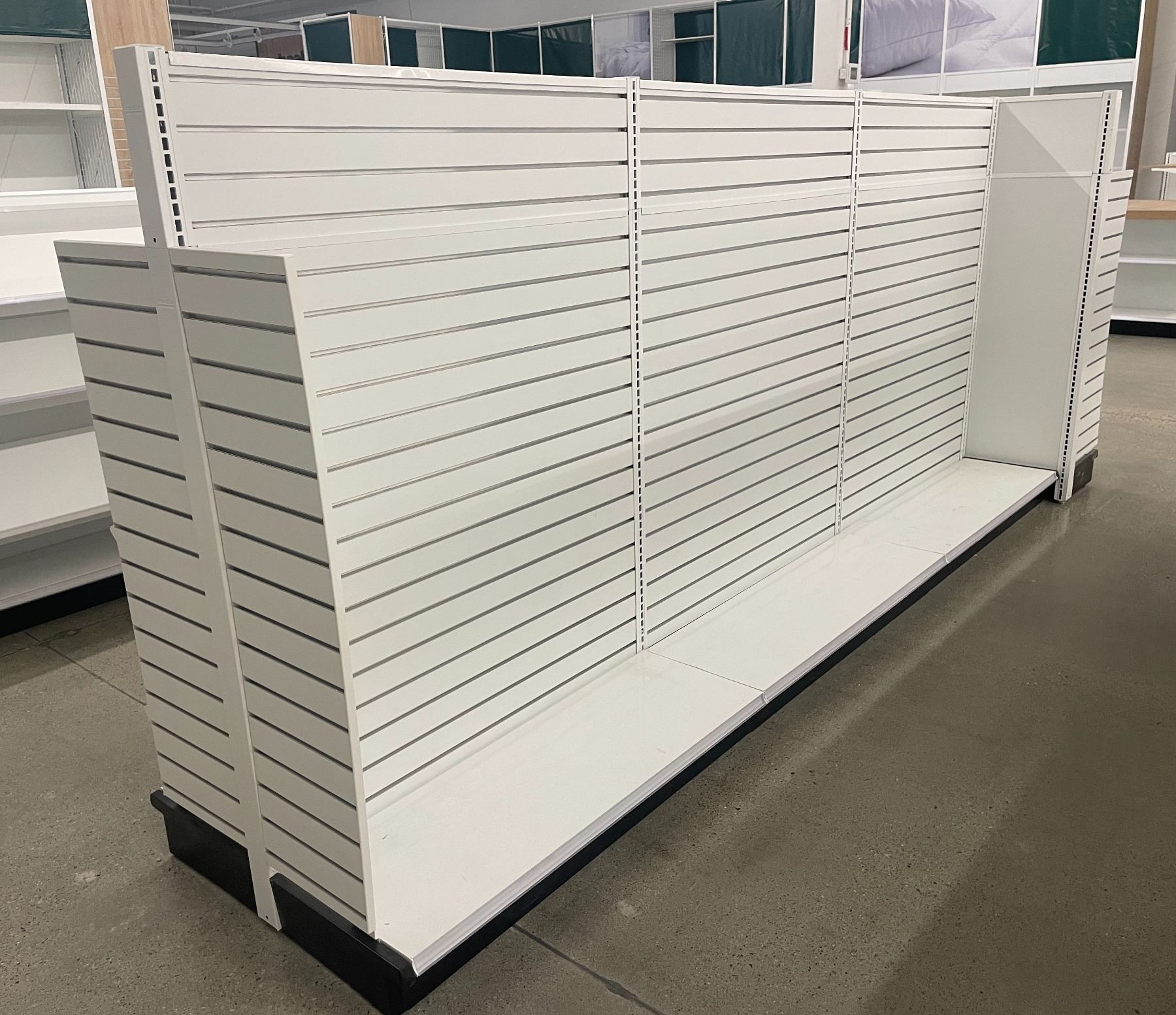 Large Slatwall retail w/single end cap & 7 shelves (approx. 168in W in 67H 38in D - excellent condition - Madix brand) BIDDERS ARE RESPONSIBLE FOR ALL COSTS ASSOCIATED WITH PICKUP OF THEIR LOTS INCLUDING BUT NOT LIMITED TO RENTAL OF EQUIPMENT, FORKLIFTS, LABOUR, TRUCKING, TOOLS ETC.