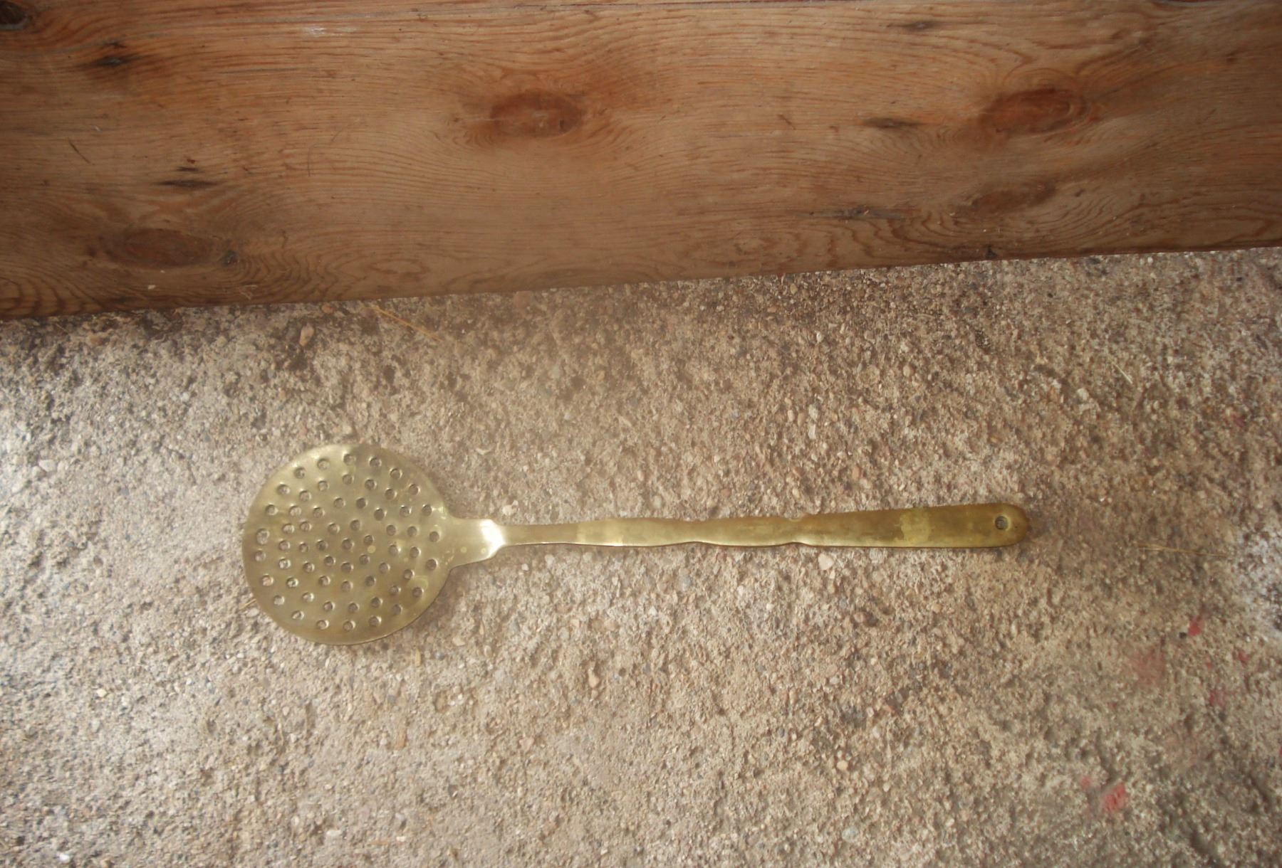 Large Slotted Brass Spoon