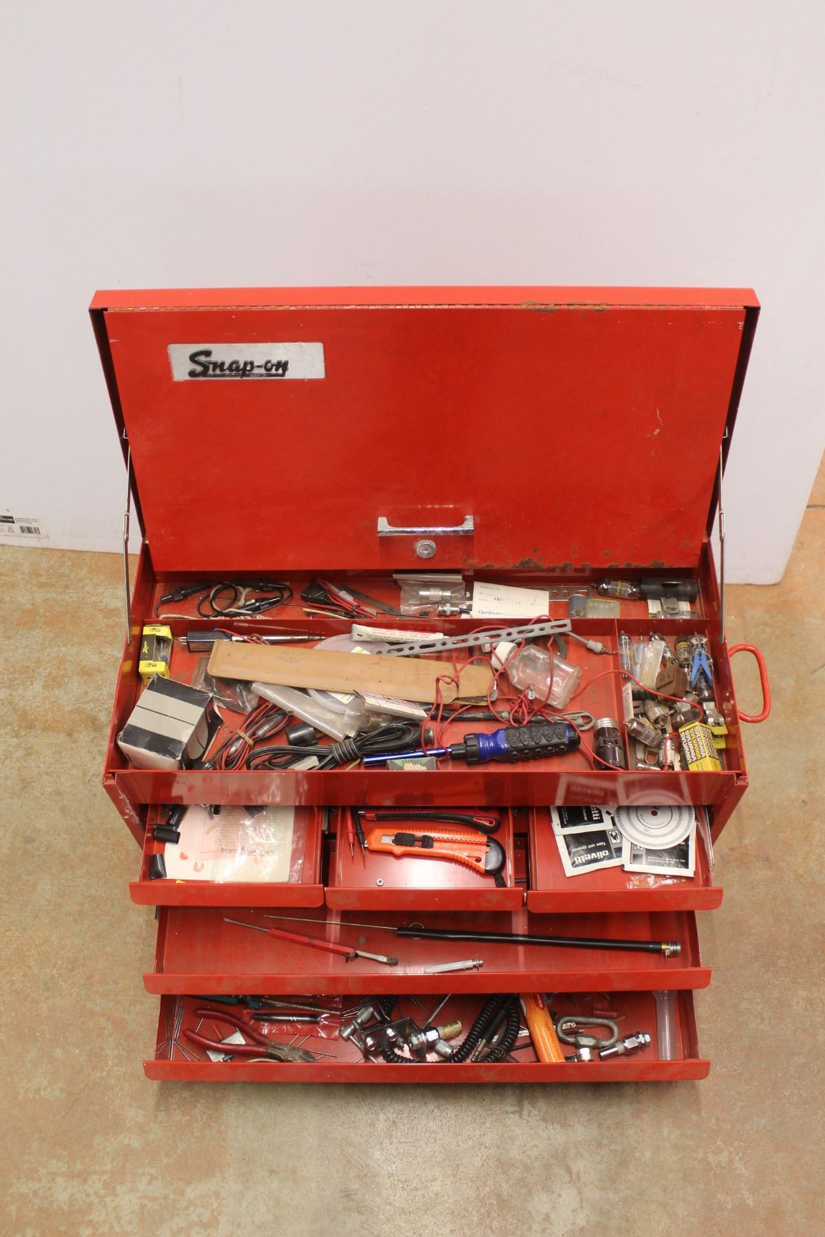 *Large Snap On Metal Tool Box 25 1/2'' x 15'' x 12'' , Metal Files, Box Cutter, Screwdrivers, Light