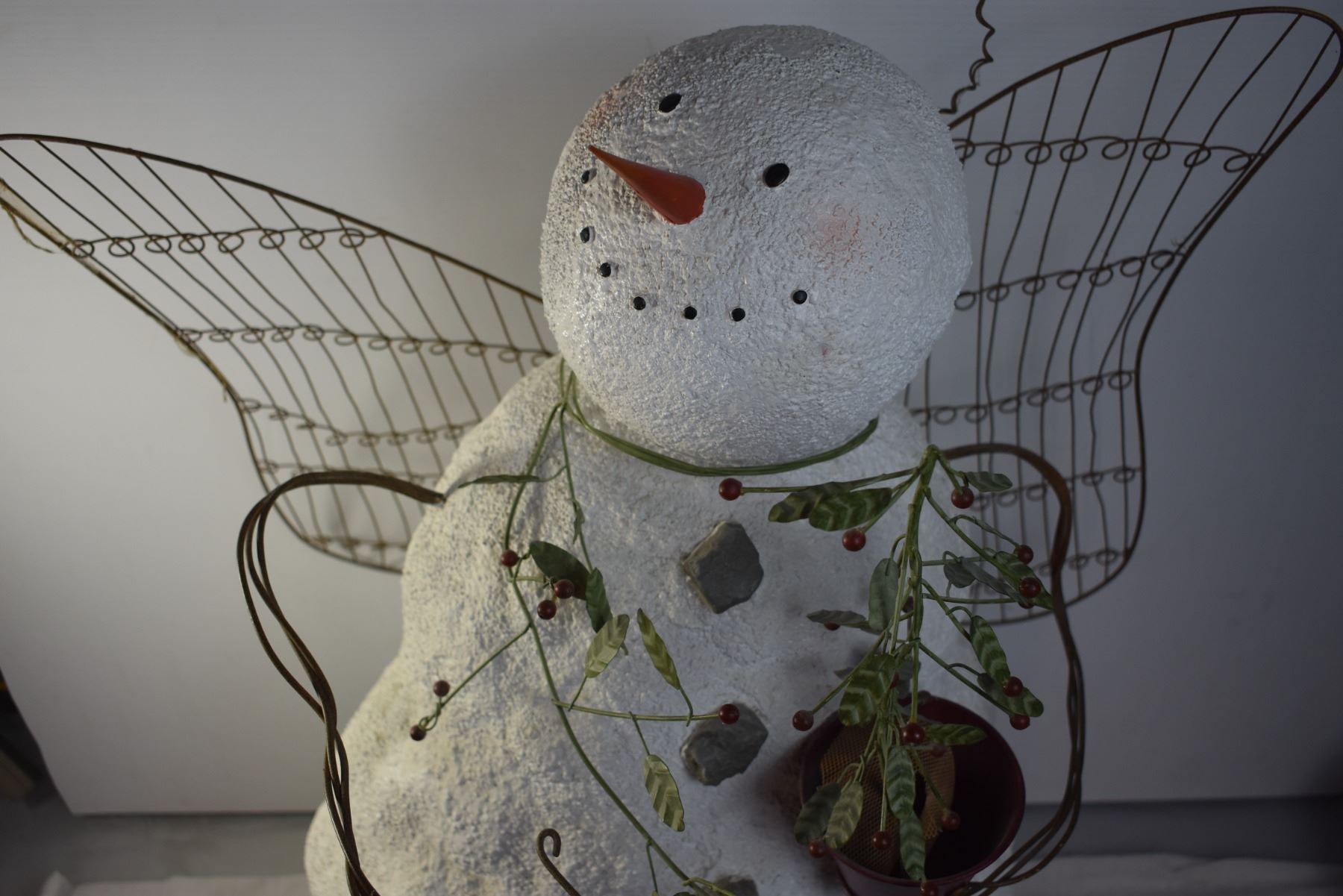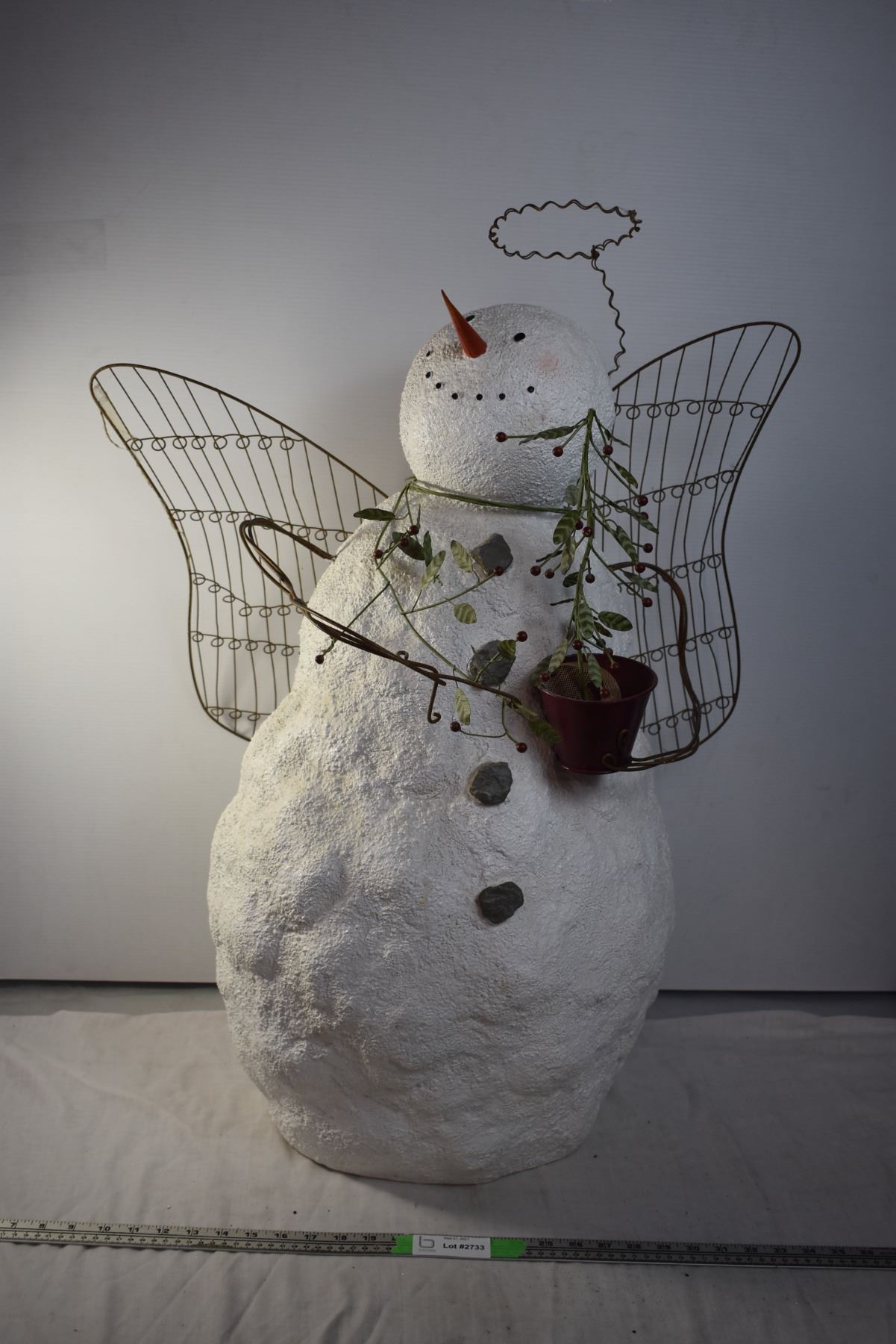 Large Snowman Statue with Wire Wings and arms (stucco body)