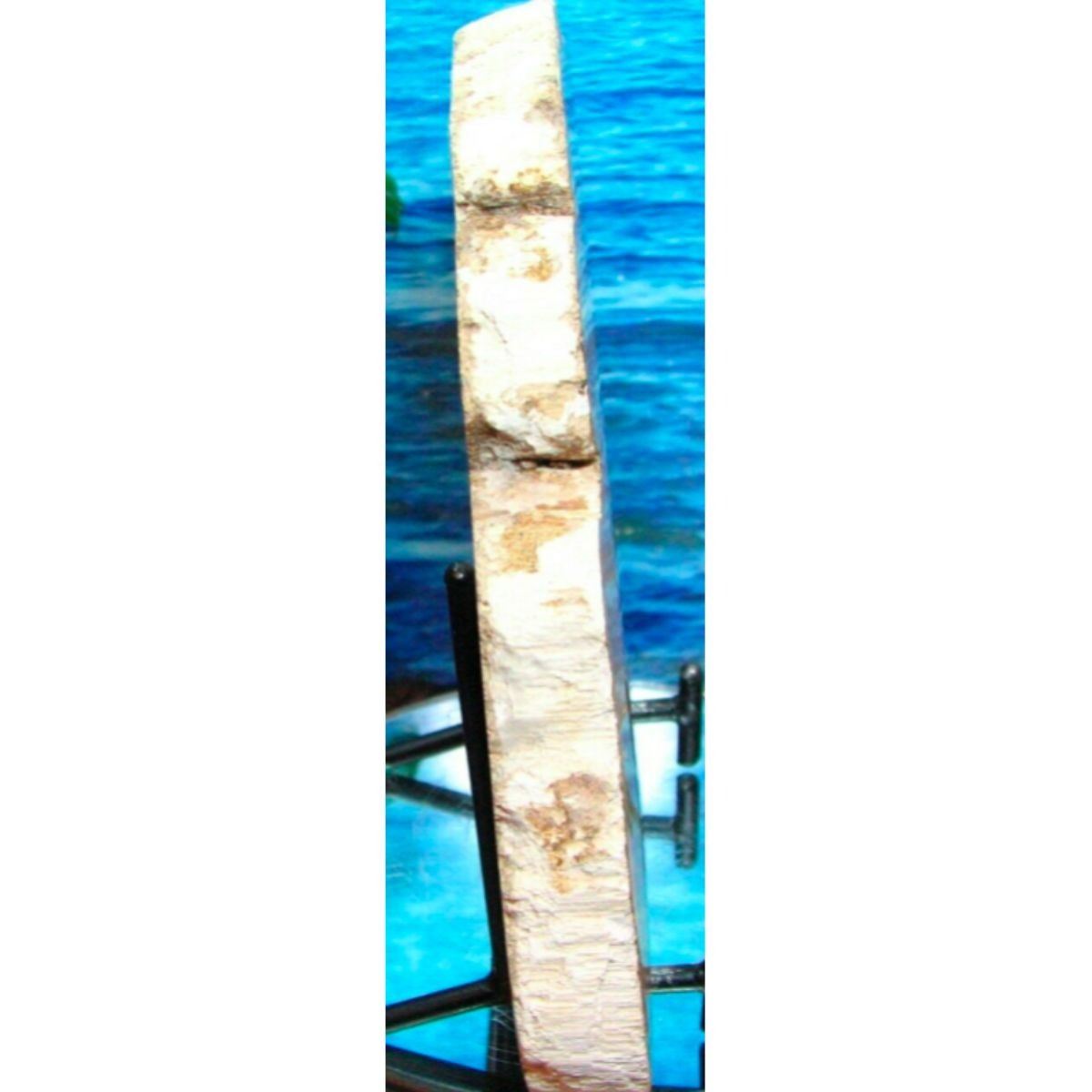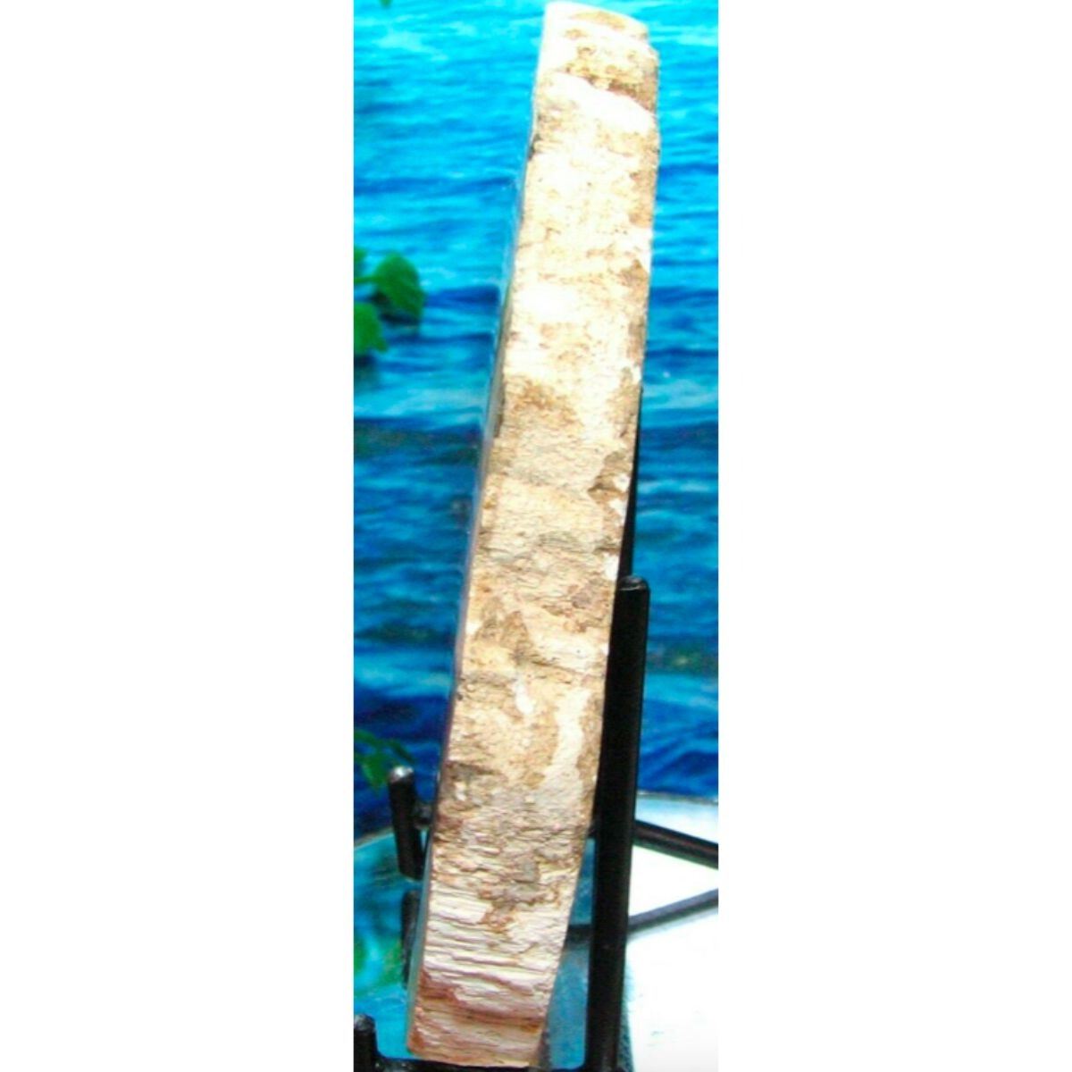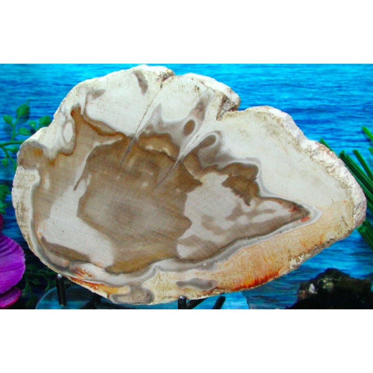 Fantastic large specimen, Myocene Period ( 20 million years old ) petrified wood, tree slab with outer bark surrounding. Indonesia origin. Polished on both sides with glossy finish. 6 3/4" L X 4 1/2" W X  5/8" thick. Approx 1 lb weight.