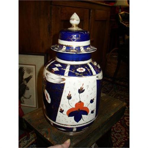 <tr><td>Title:Large Staffordshire Imari Pattern Jar with Lid</td></tr>