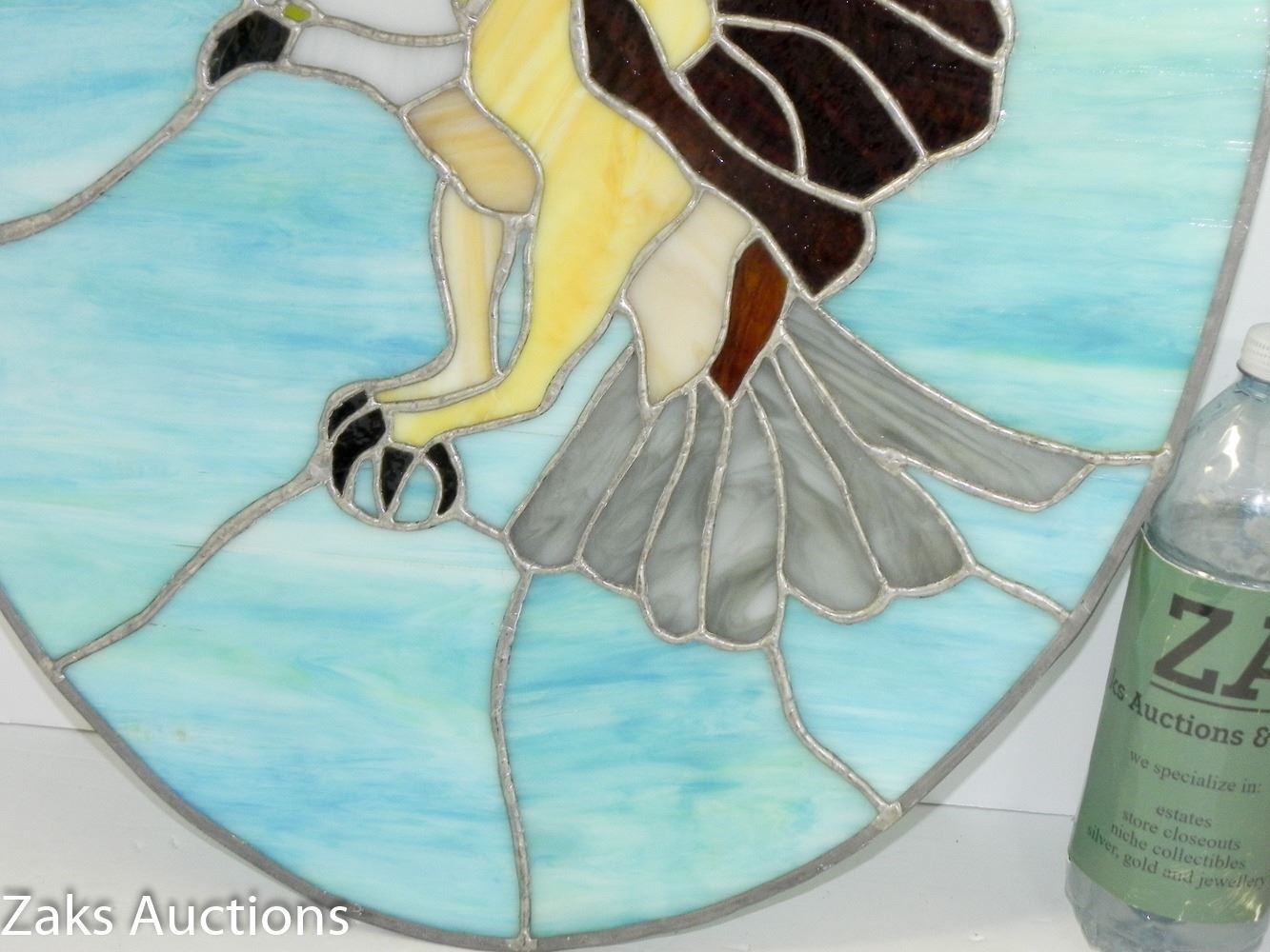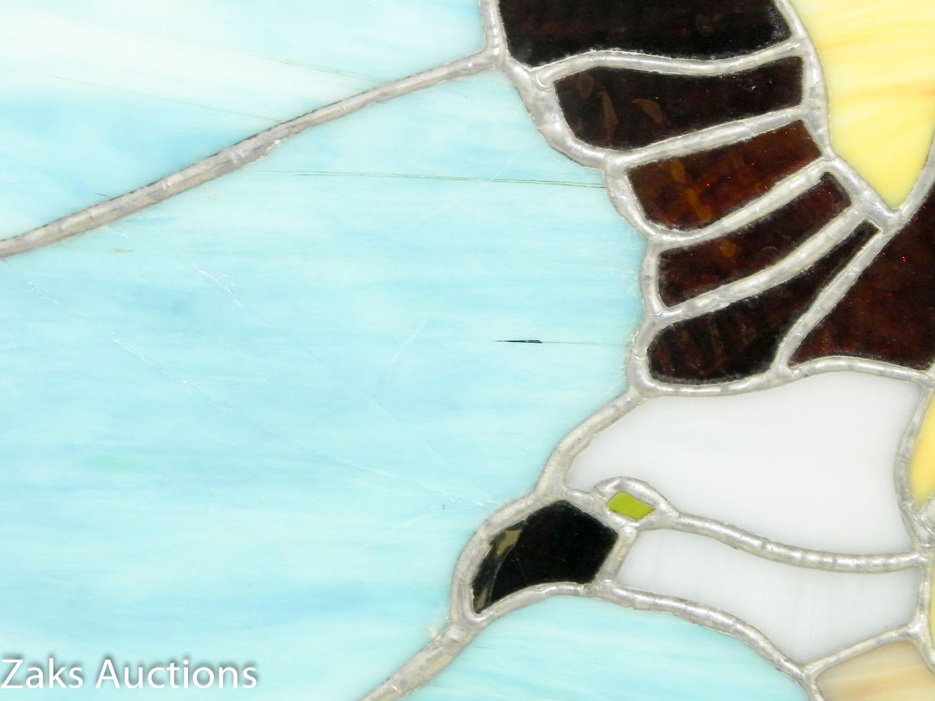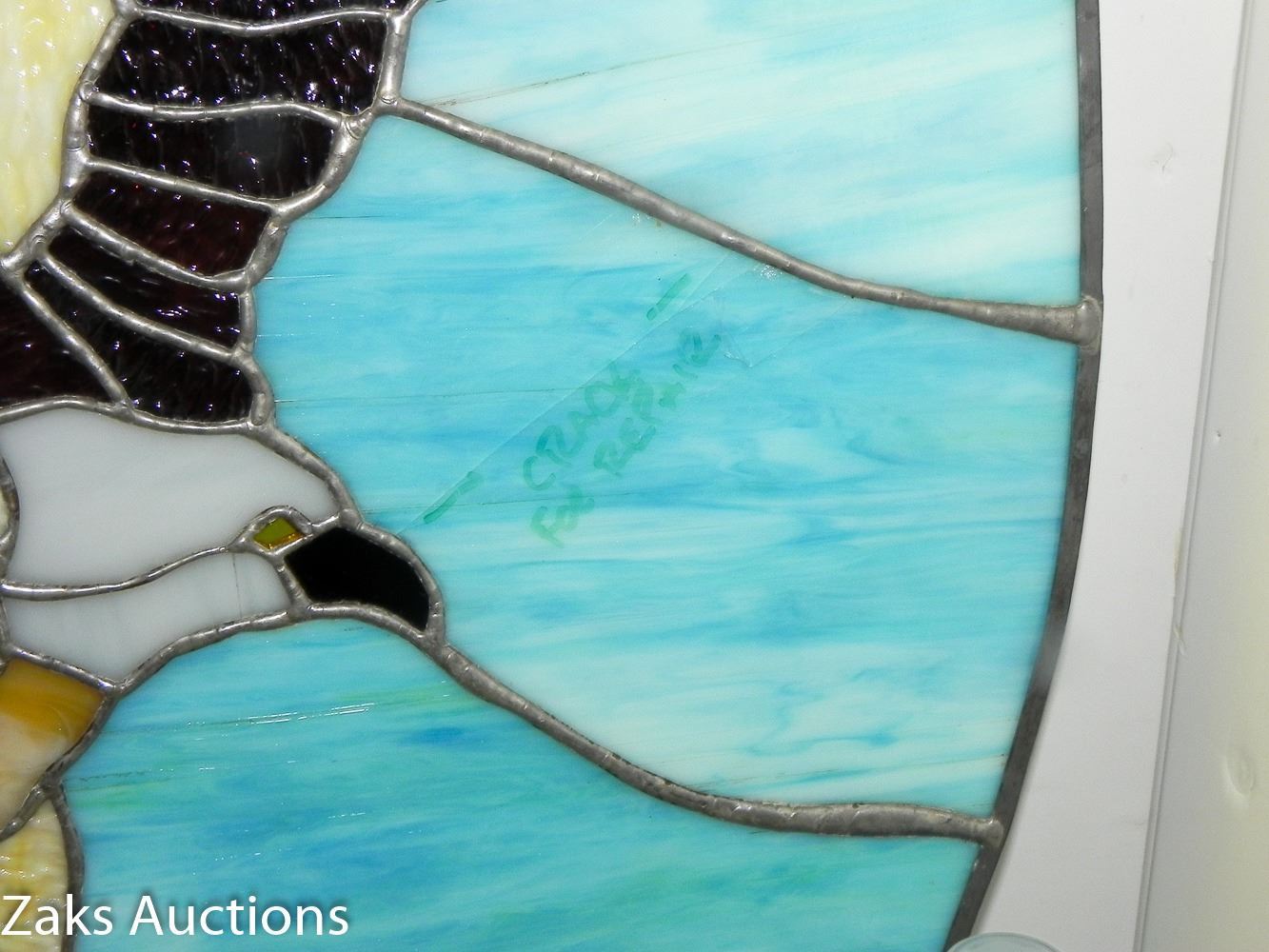 25.5" x 18". Hast noted damaged to be repaired. Securely taped into place. Barely noticeable