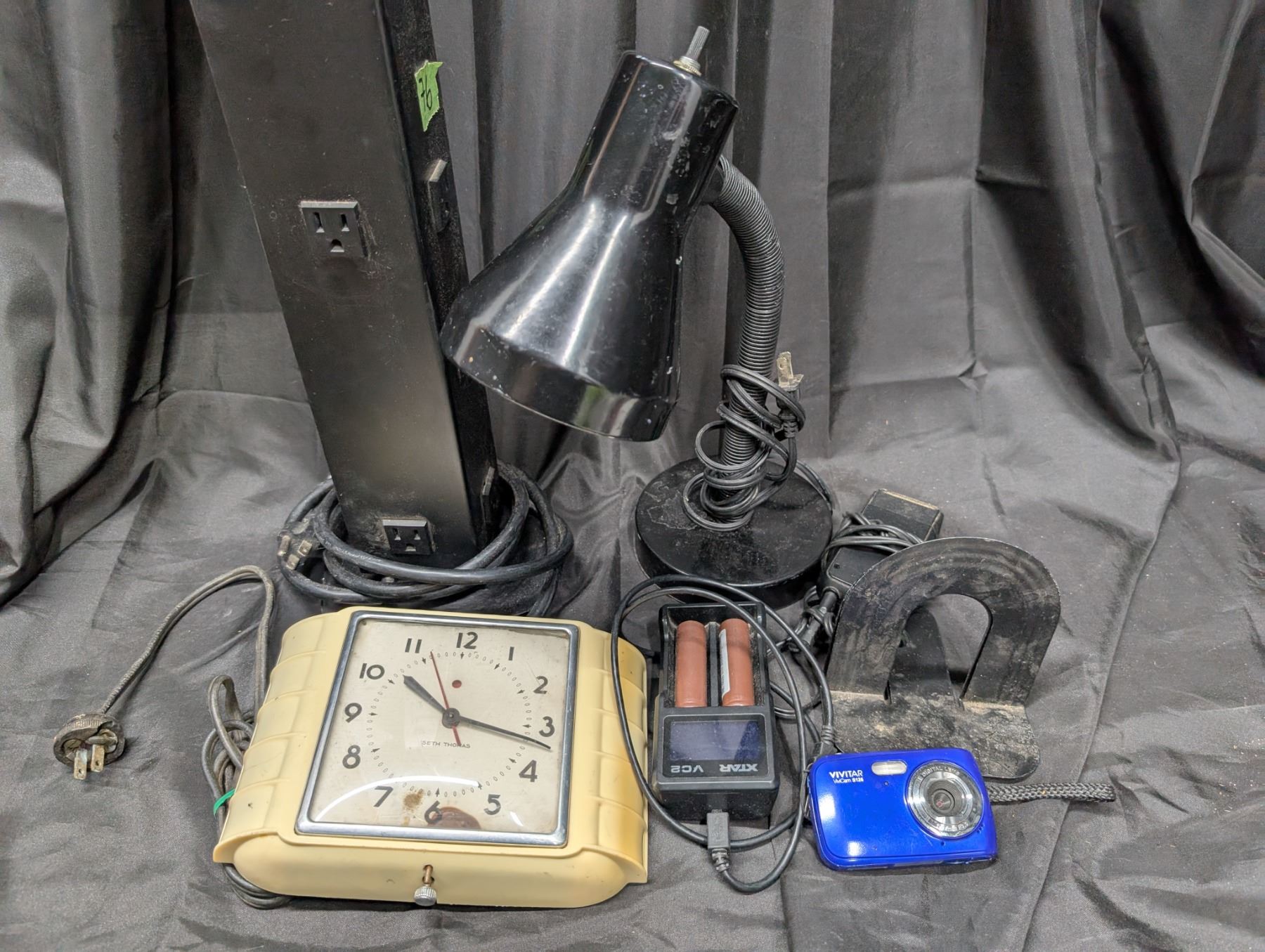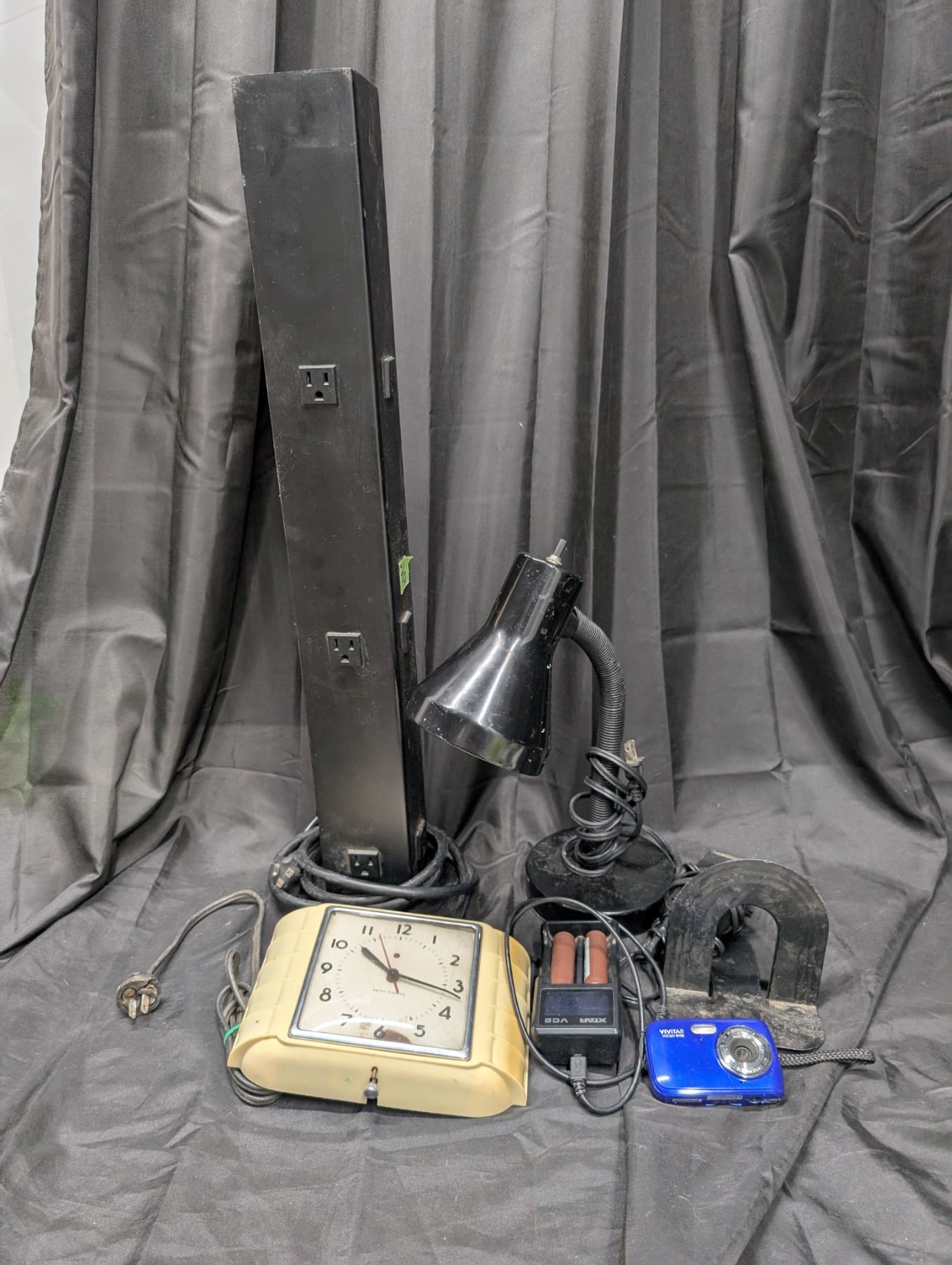 Large Standing Socket Box w/ Misc. Old Technology (Lamp, and etc.)