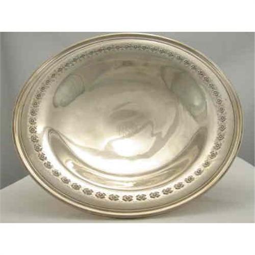 A nice big Sterling serving bowl. Pretty Pierced floral edge decoration. Made by the Wendell Manufacturing Co. in business from 1850 to 1909. 3.1/2" tall. 10" across the top. Initialled in the center, "RSM". See pics