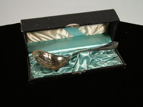 (England 19th Century) Large silver ladle with lined box, engraved "Louise", 8 1/2" by 2 1/2".