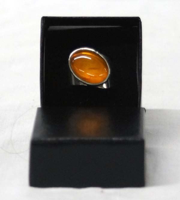 Gorgeous Large Sterling Silver and Amber Ring, Size 10, measures .75''W, 9.69g in total wt.