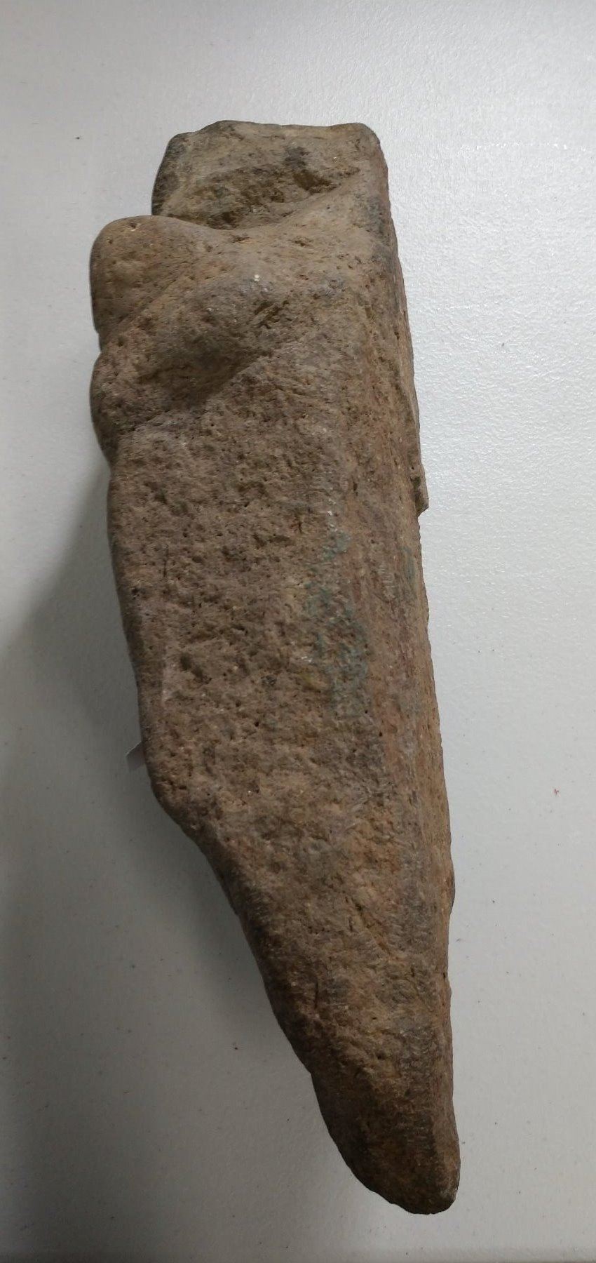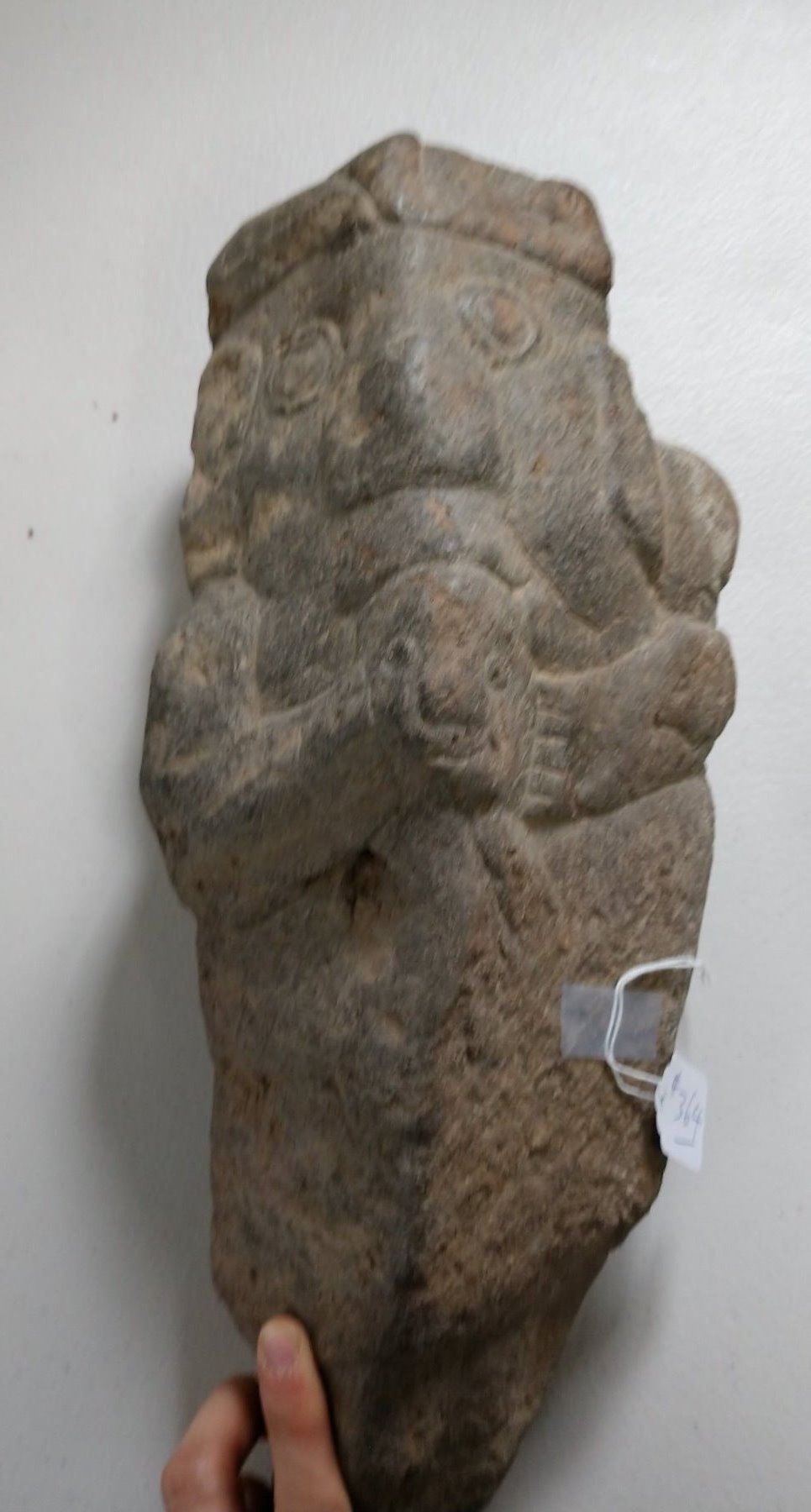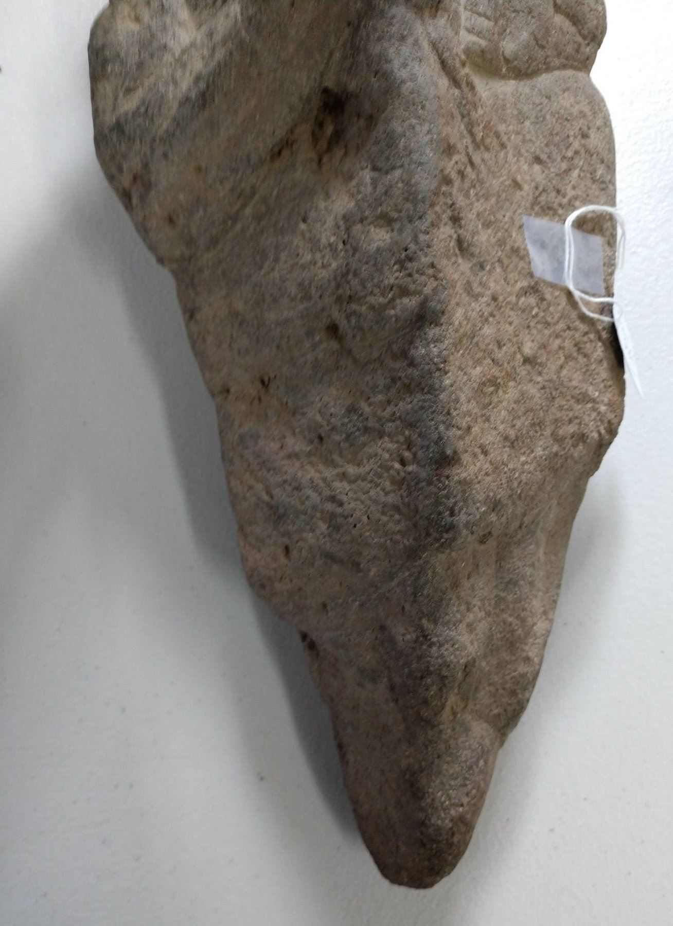 Large Stone Effigy Marker, pre-Columbian item. Made of basalt, the item measures 18" x 8" x 7". Central America. From an old, 1960s California collection. Appears to be a man holding a head. Weighs approx. 30 pounds. Condition: As found, see images. Shipping: $85.00 USA estimate only, due to weight and value.