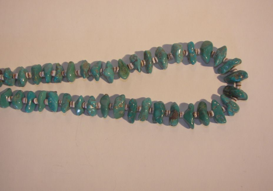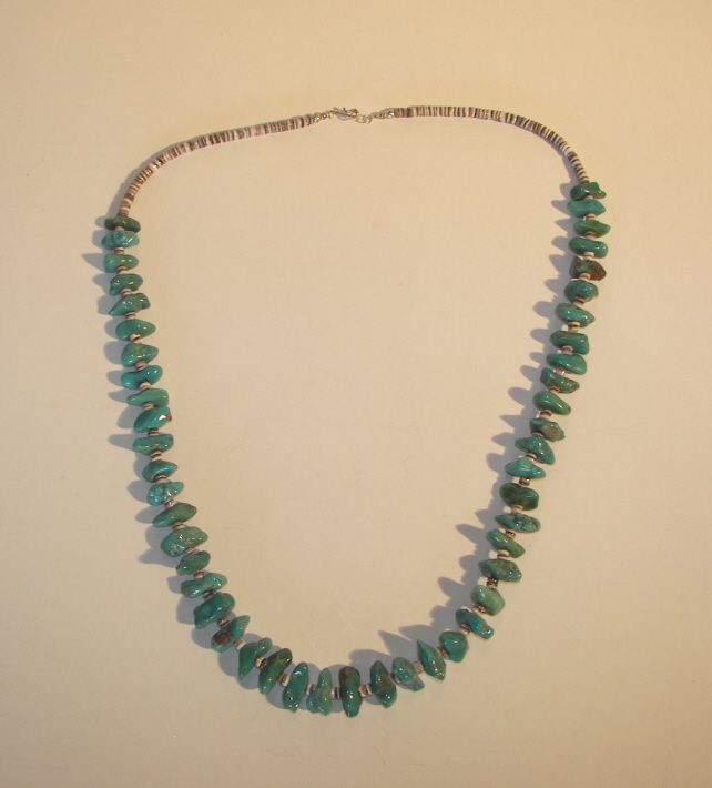 (7685) Large Stone Turquoise Nugget And Heshi Necklace, 28" Long