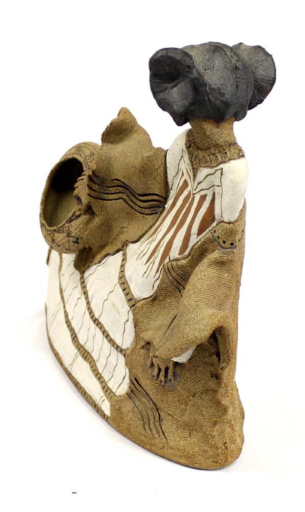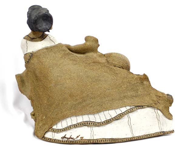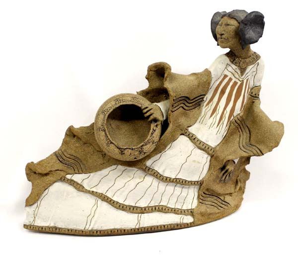 Large 1999 Stoneware Pottery Native American Hopi Maiden by Douglas F., measures 16'' x 13'' x 5.5'' and is signed by the artist