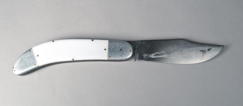 A very large folding pocket knife with brass and metal fittings, appears to be a display model, but made just as well as the smaller one, 15"L open, circa 1940's.