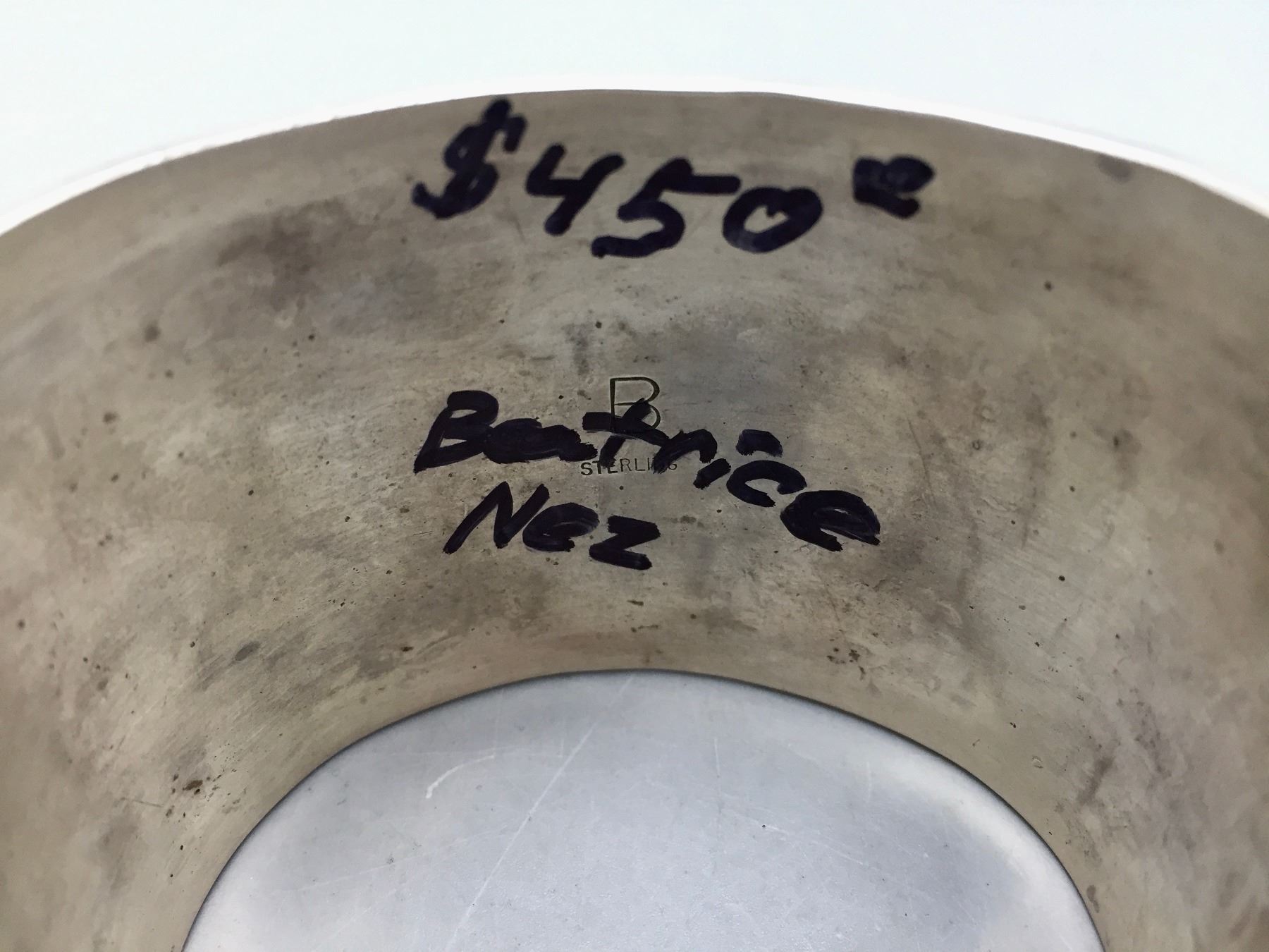 Size: Measures 6" around with a 1-3/8" opening (fits a 7-3/8" wrist). Measures 2" wide. Weighs 86.8 grams. Condition: Good for its age, normal wear expected. Please look closely at the pictures - they are an important part of our description.