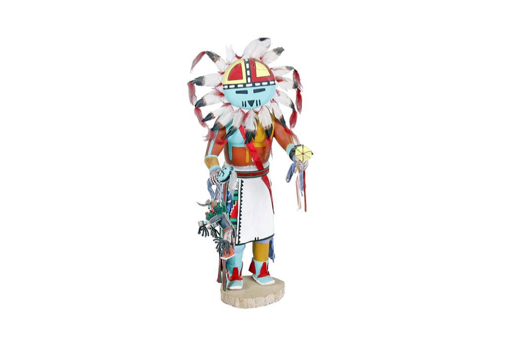 Large Sun Faced Kachina by Dean Lewis Of Second Mesa, as told to us by consignor, measures 25" overall, minor cracking to face.Of Second Mesa, as told to us by consignor, measures 25" overall, minor cracking to face.
