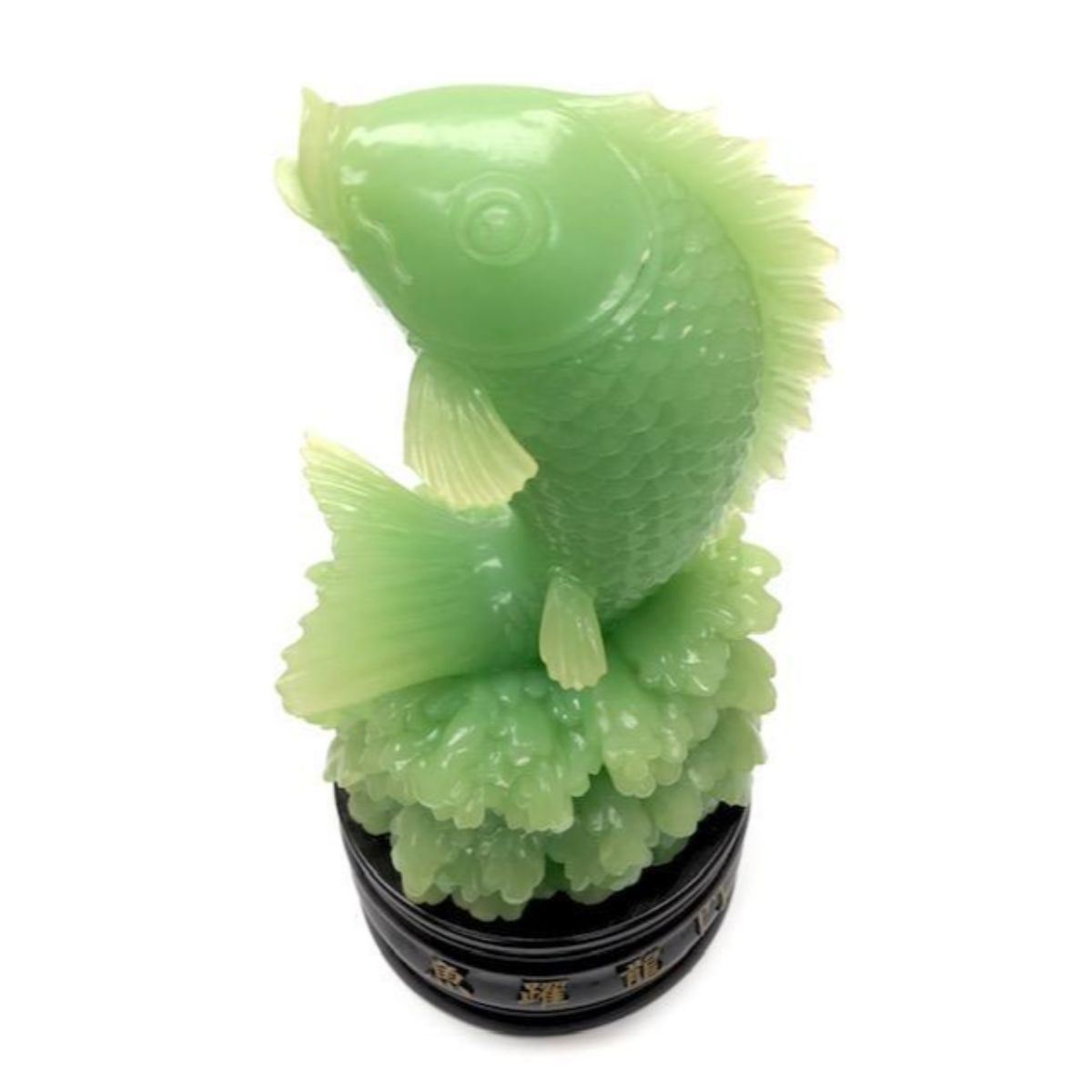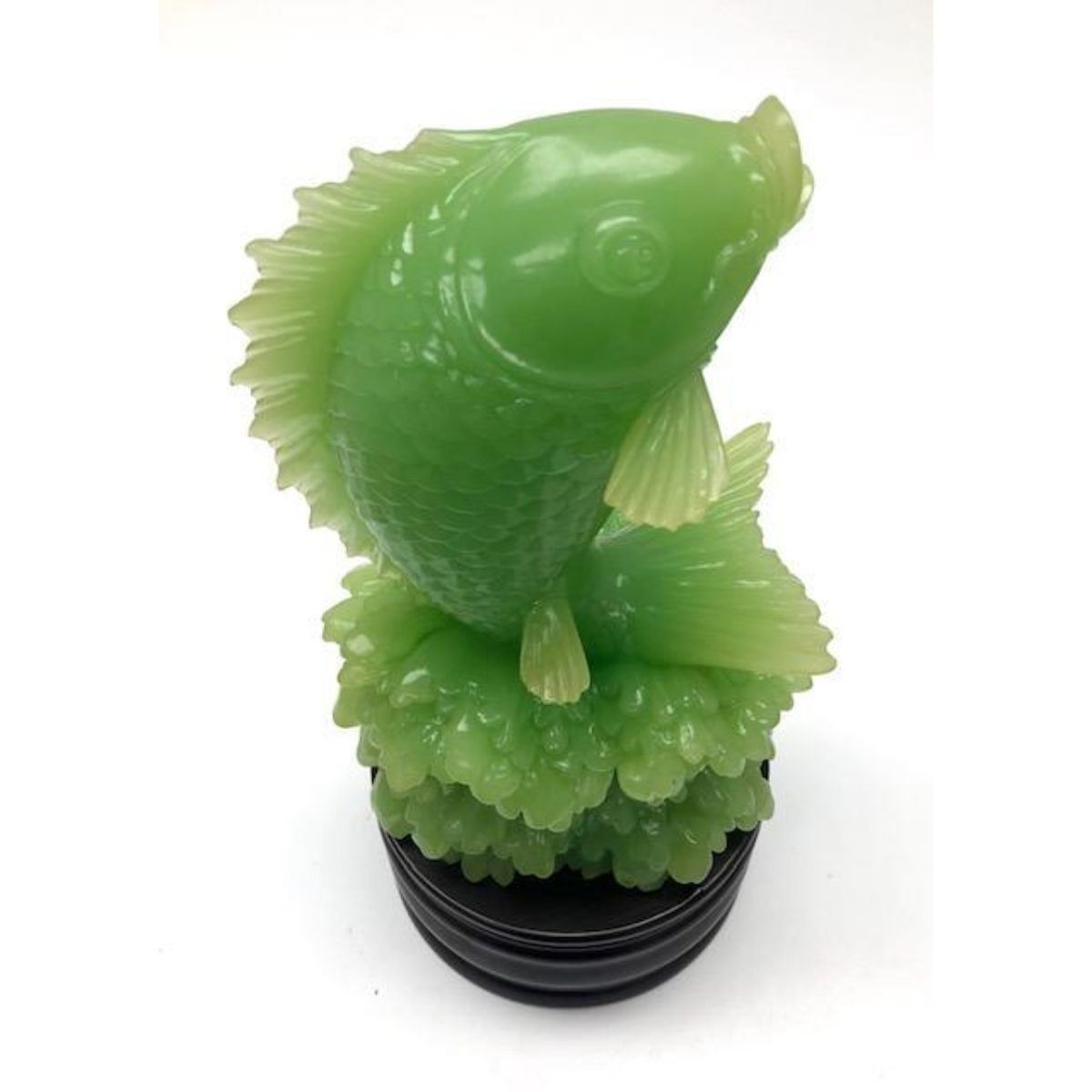 Large Surfacing Carved Choe Fish On Stand One Of The Legends Of The Koi Fish Stem From The Chinese Legend Of The Dragon Gate In Which A Koi Fish Swam Upstream, Through Waterfalls And Other Obstacles To Reach The Top Of The Mountain. At The Top Of The Mountain Was The "Dragon Gate." The Legend Says That When The Koi Finally Reached The Top, It Became A Dragon One Of The Most Auspicious Creatures In Chinese Culture. Height 14", View Photos For Further Details.