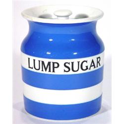 Large T.G.Green blue banded Cornishware lump sugar storage jar, black shield to base, 16cm high