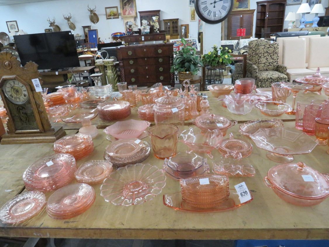 Large Table Lot of Pink Depression Glass