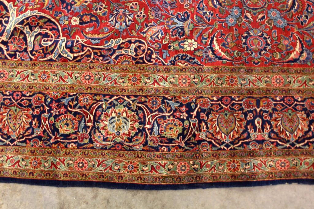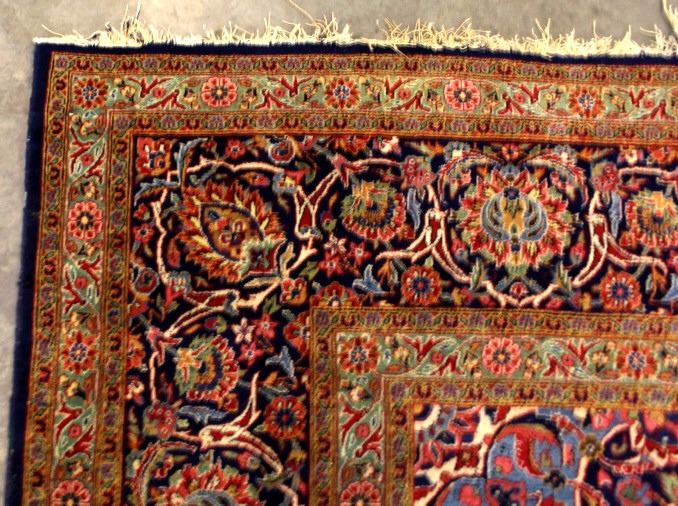 This lot features a large Tabriz Persian rug. Tabriz, located to the north-west, is Iran’s second oldest city and has been at the center of the rug-making world for hundreds, perhaps thousands of years. Most Tabriz rugs have a powerful red or blue with contrasting ivory background. Tabriz is the host to some of the most beautiful rugs in the world and rugs form this area are highly sort after by collectors. The rug features a stunning design and impressive weaving. It is in good overall condition. Measures: 12' 6" W x 9'10 1/2" L