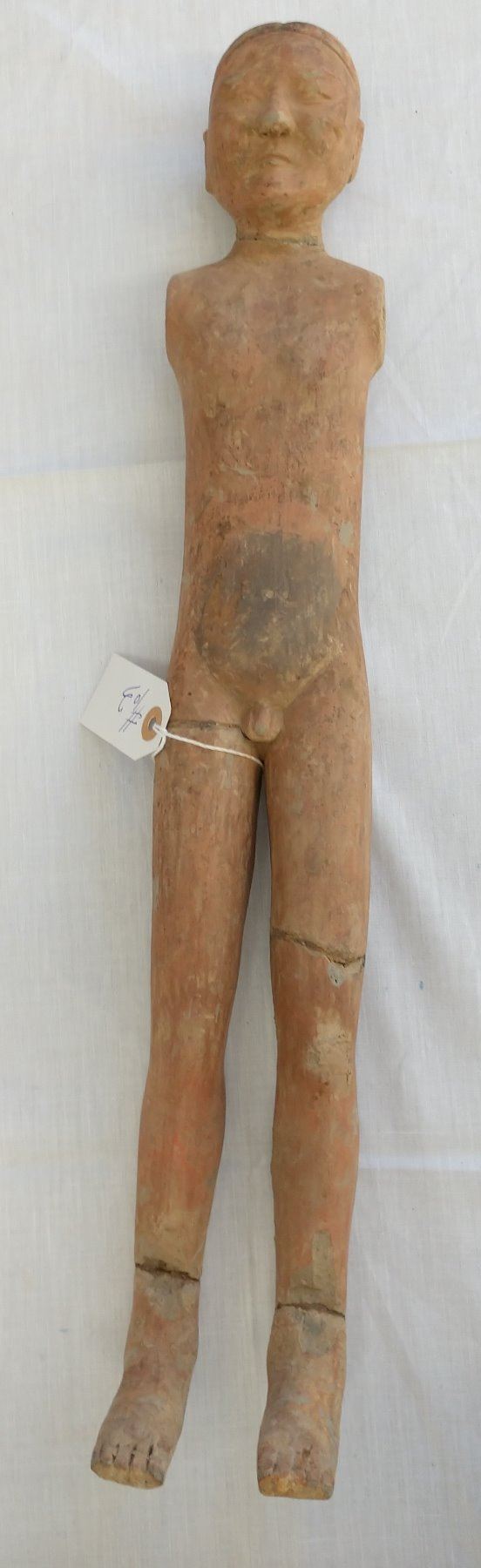 Large Tang Dynasty Human Figure w/John Jordan COA, Tang dynasty. Made of clay, the item measures 23" x 4". China. John Jordan Certificate of Authenticity. Several breaks on legs, head reattached. Condition: Arms missing, several breaks, head reattached, see images. Shipping: $65.00 USA estimate only, due to size, double-boxed, w/insurance and signature.