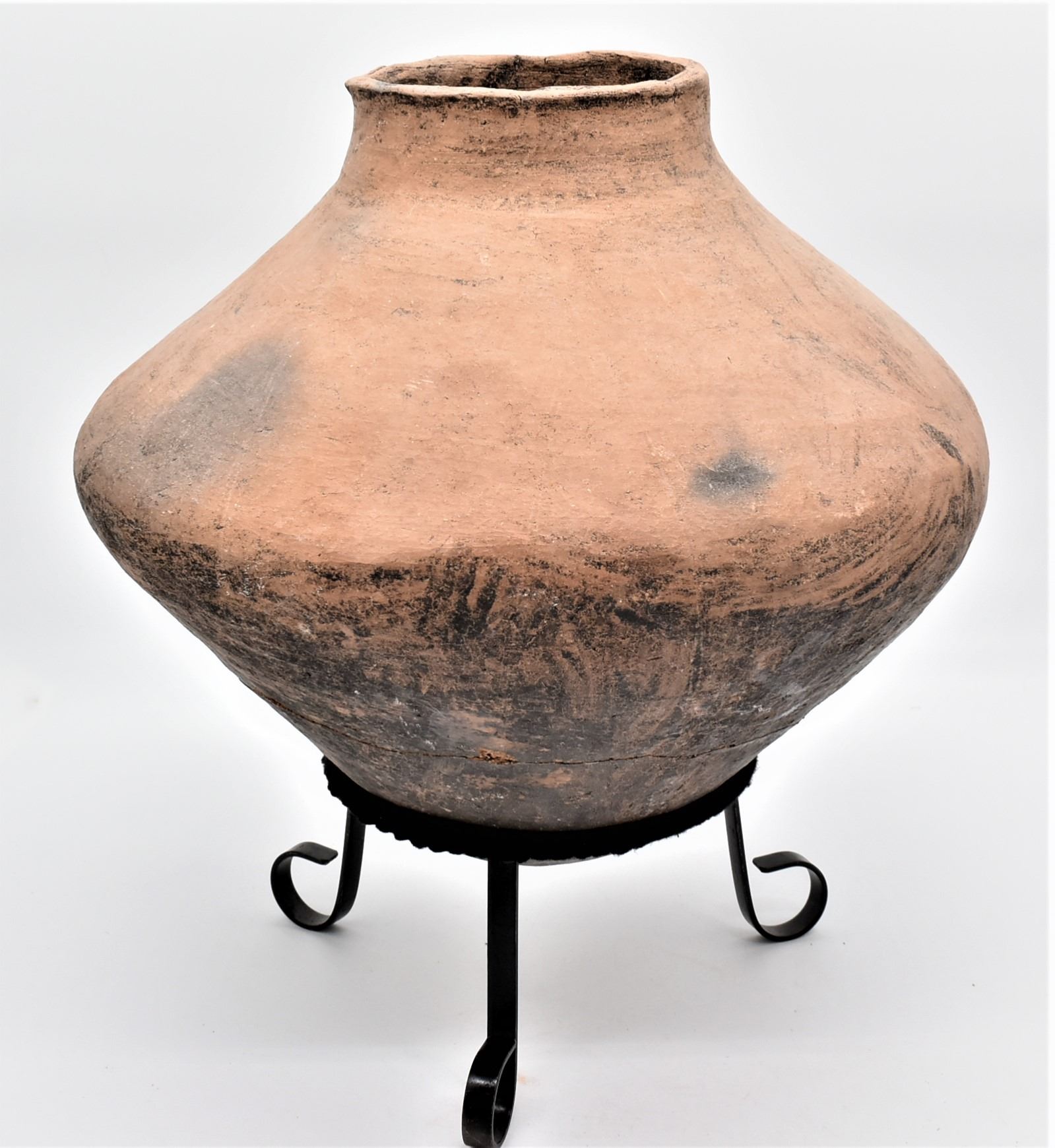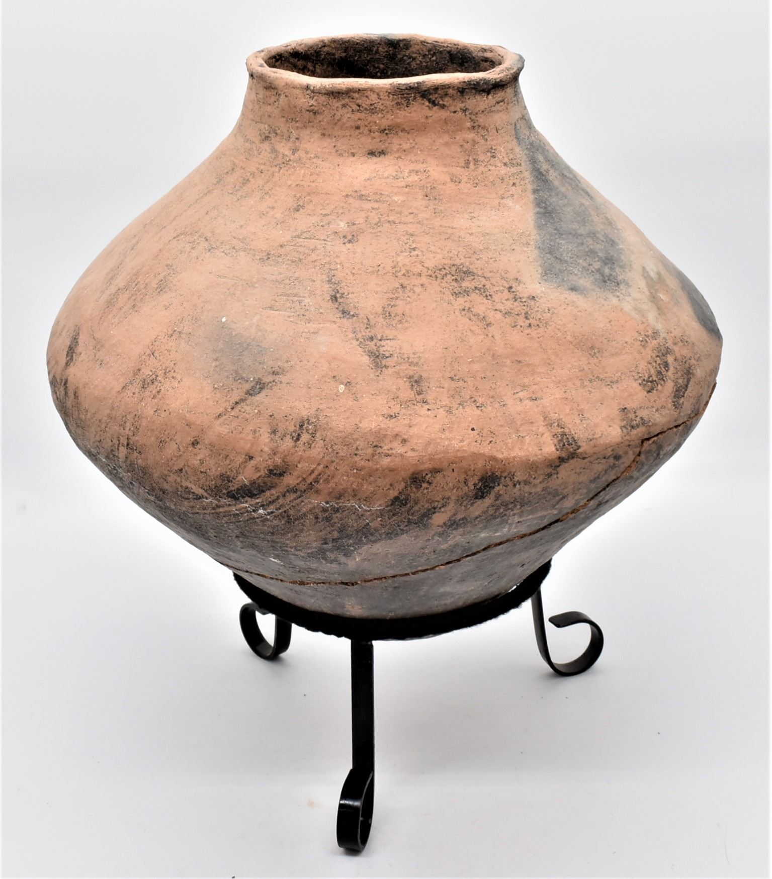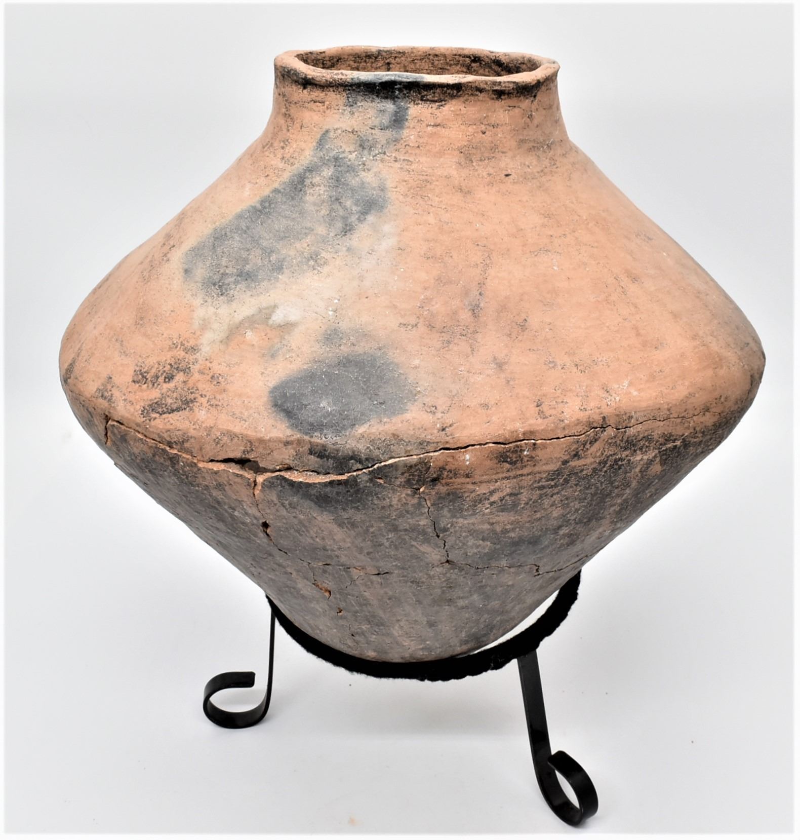 Large Tarahumara Pottery Olla, broken and glued, comes with stand, MUST BE PICKED UP