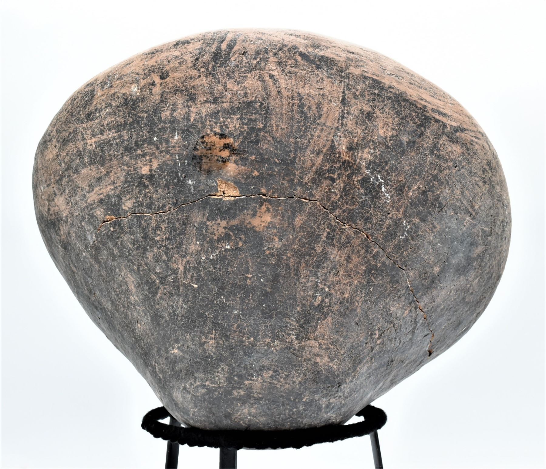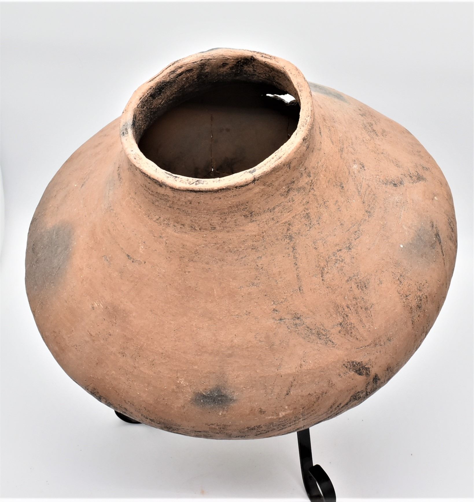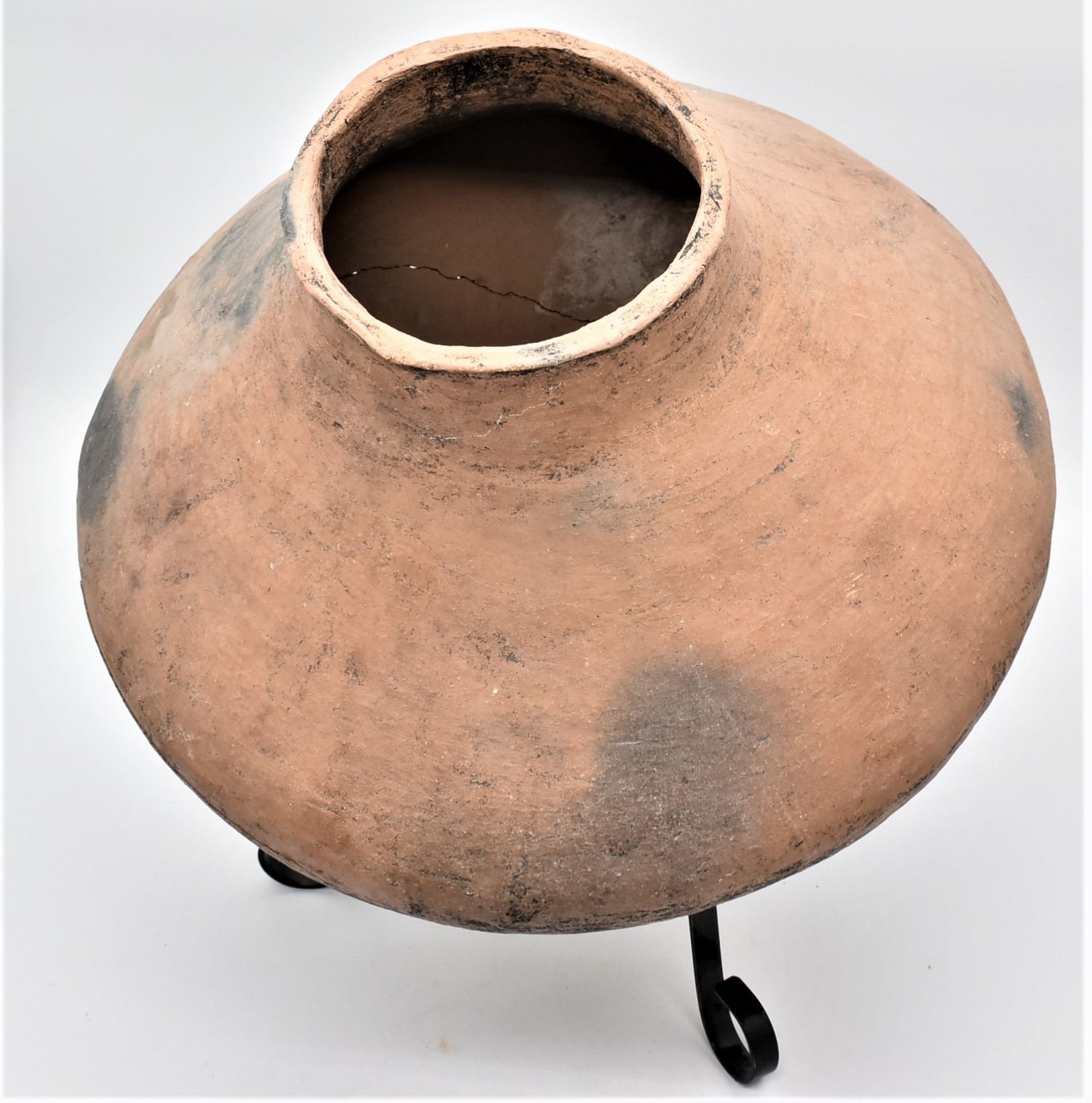Large Tarahumara Pottery Olla, broken and glued, comes with stand, MUST BE PICKED UP