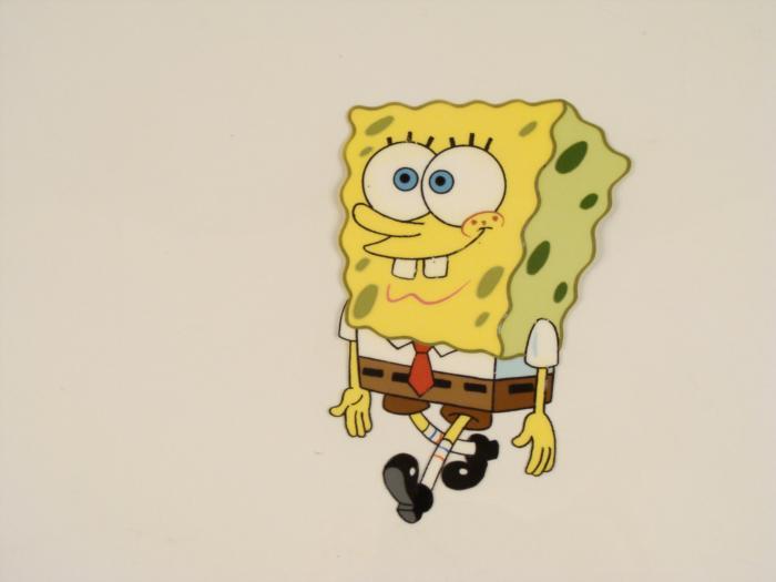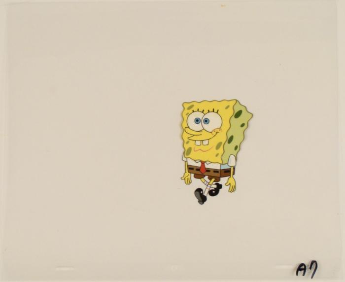 This original animation cel is from the Nickelodeon TV show SpongeBob Squarepants. The story takes place under the deep blue sea in Bikini Bottom, where SpongeBob resides. SpongeBob, who is a yellow, porous sponge, is your typical happy-go-lucky character, as he is always cheerful and enjoys making people laugh. Patrick Star, SpongeBob's neighbor who is a starfish, is your average children's show idiot, as he boasts knowing nothing and is often getting himself into ridiculous situations. Between the homes of these two lies the home of the miserable Squidward, a squid, who is known for being grouchy and playing tricks on SpongeBob and Patrick. Both SpongeBob and Squidward work at the Krusty Krab, a fast food business run by the greedy money-loving Mr. Krabs, a crab, the arch rival of the evil, possibly misunderstood, Plankton. Another neighbor, Sandy Cheeks, an athletic squirrel who normally wears an astronaut's space suit, was introduced in "Tea at the Treedome." She spends most of her time inventing and experimenting. SpongeBob has two very large front teeth.Original Production Animated Cel Overall Size of Cel: 10 1/2" x 12 1/2" Very Good ConditionThis is an original hand-painted cel set-up used in the production of an episode of "SpongeBob SquarePants." Each one-of-a-kind set-up represents a slight change in position of the characters. When individually photographed and projected in rapid succession, the images appear to move.