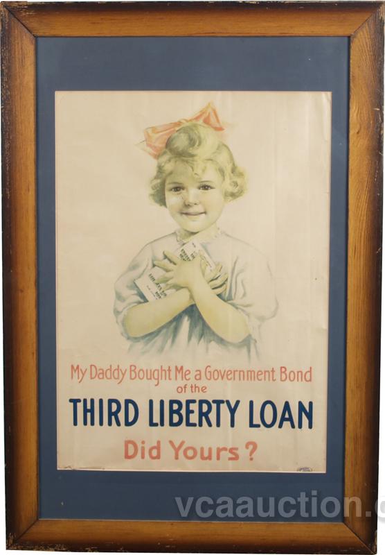 Large Third Liberty Loan Paper Lithograph Poster Advertisement "My Daddy Bought Me A Government Bond - Did Yours?" in wood frame - 27" x 40"
