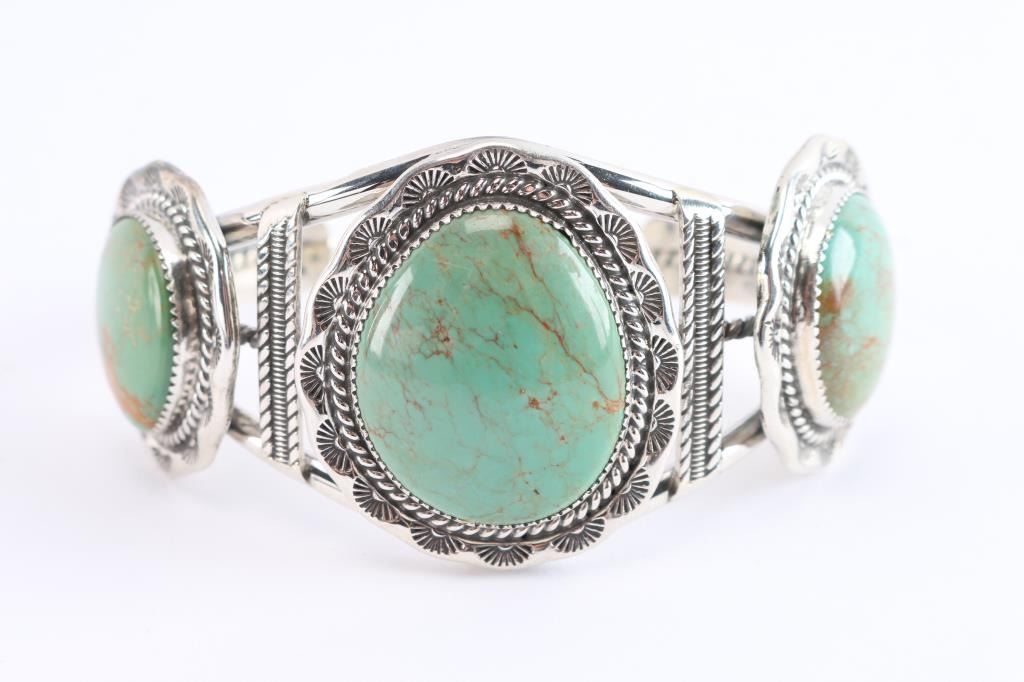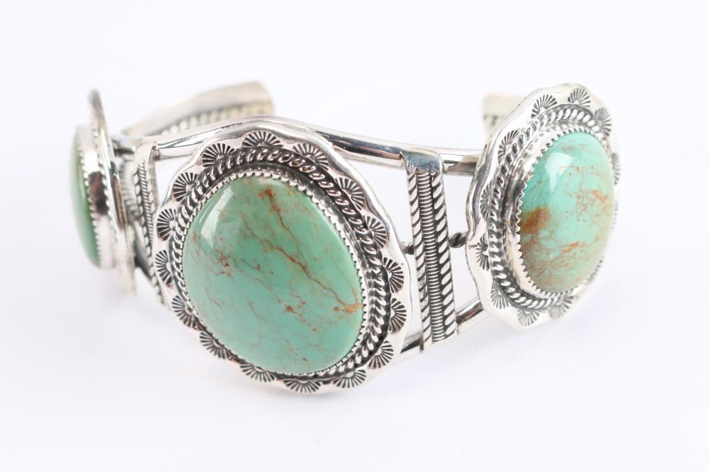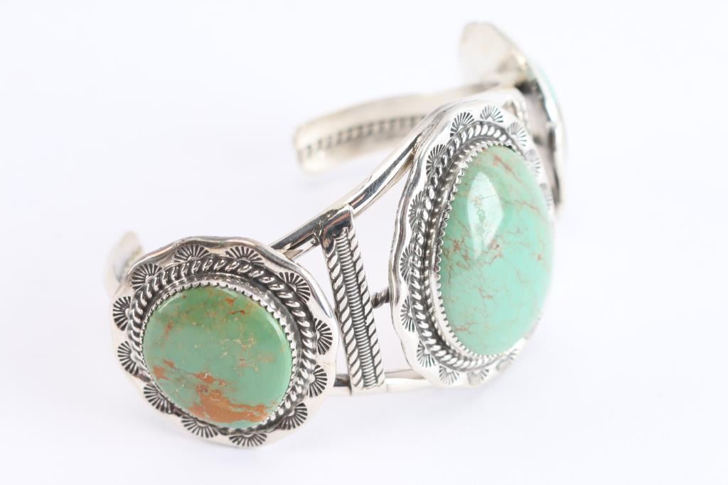 Large Three Stone Turquoise Cuff,