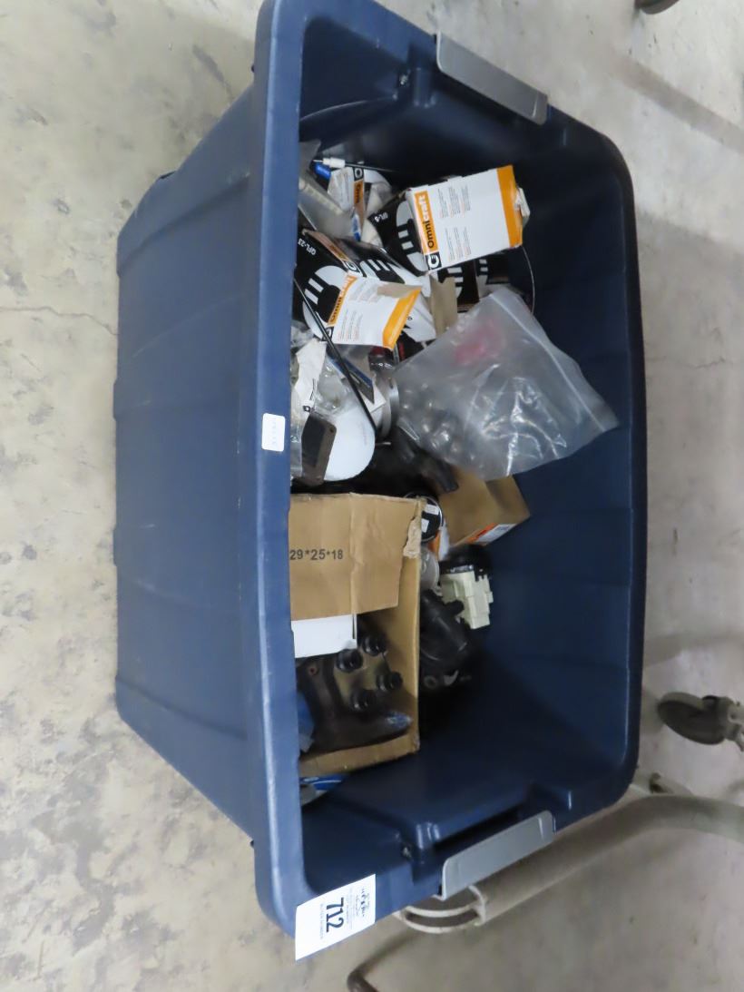 Large Tote w/Auto Oil Filters, Car Stereo, Auto Parts