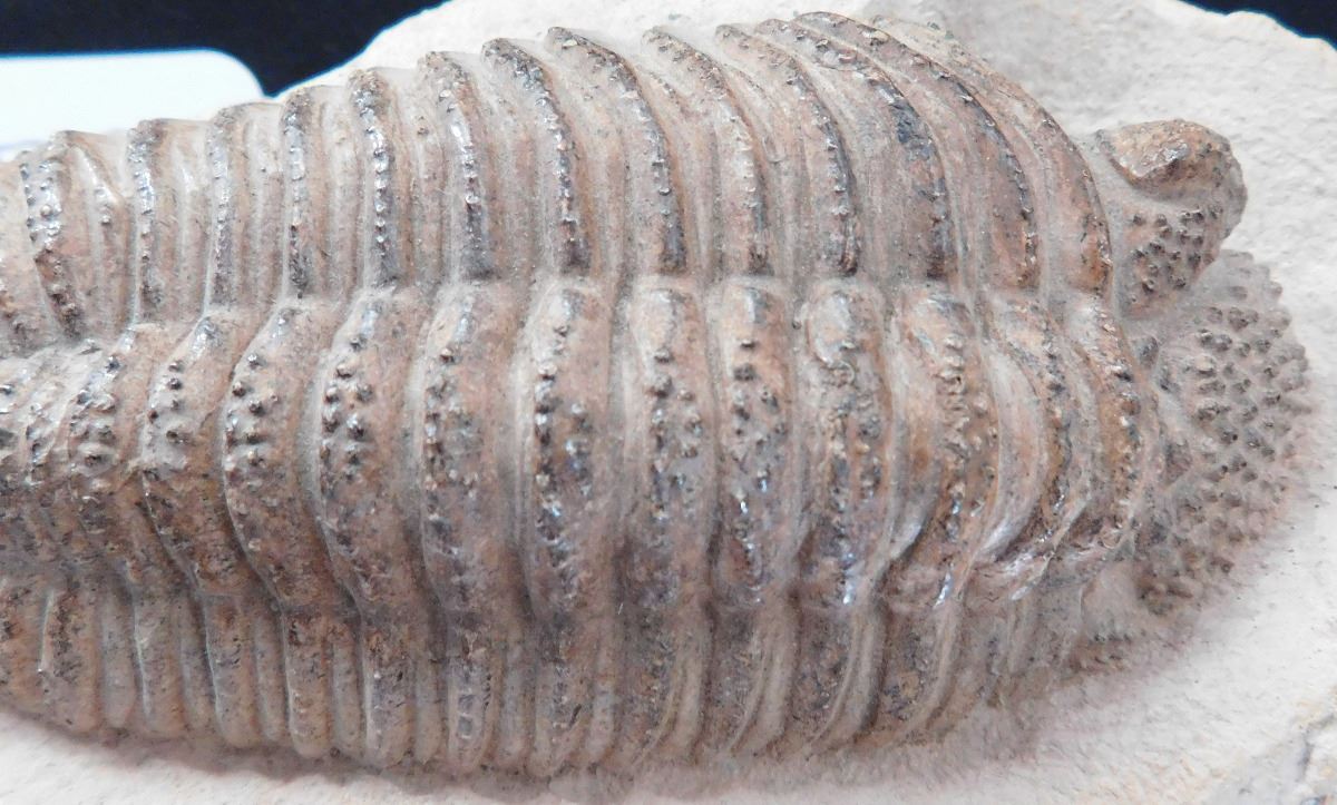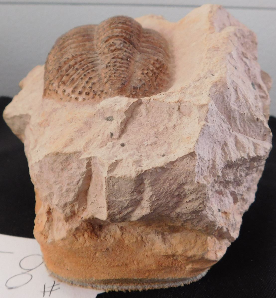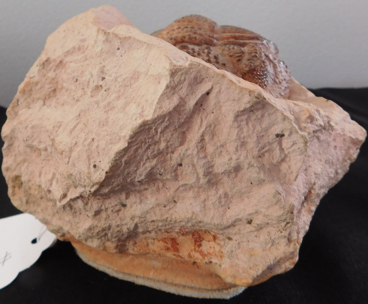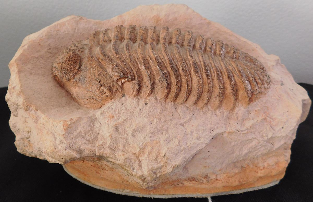 Large Trilobite Fossil, circa 250 million years old, Permian. Set in shale, item measures 7" x 5" x 3.5". Found in Ohio. This fine looking trilobite fossil has been finished well leather on bottom so it does not slip. Condition: Fine fossil, see images. Shipping: $20.