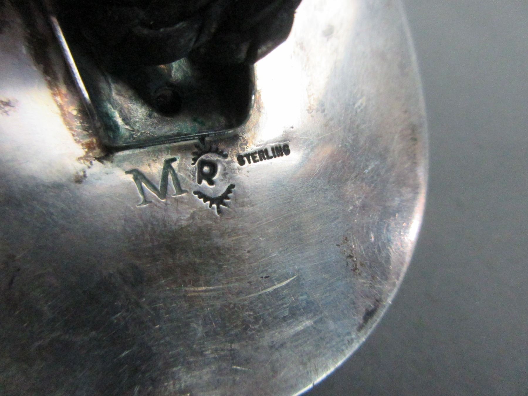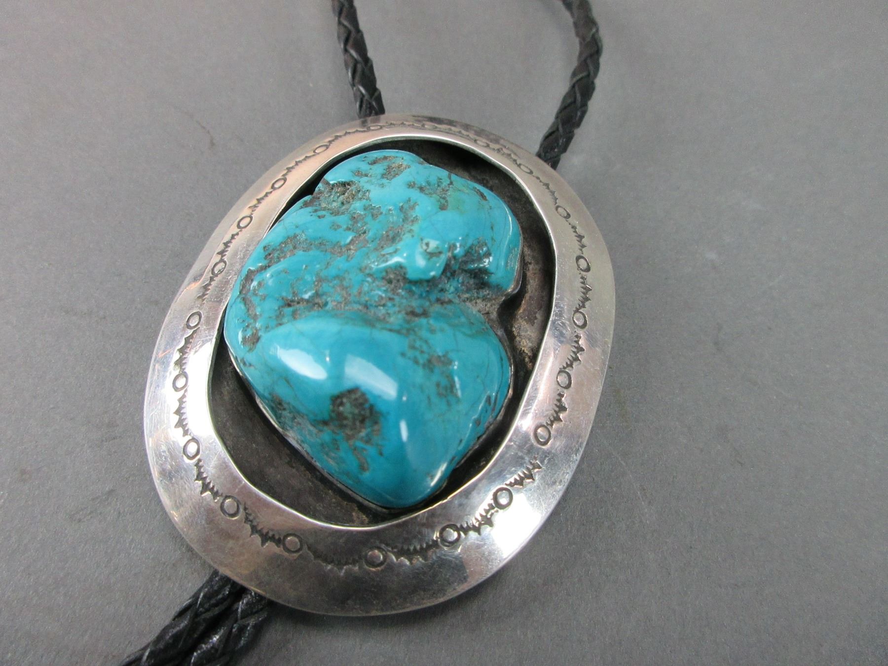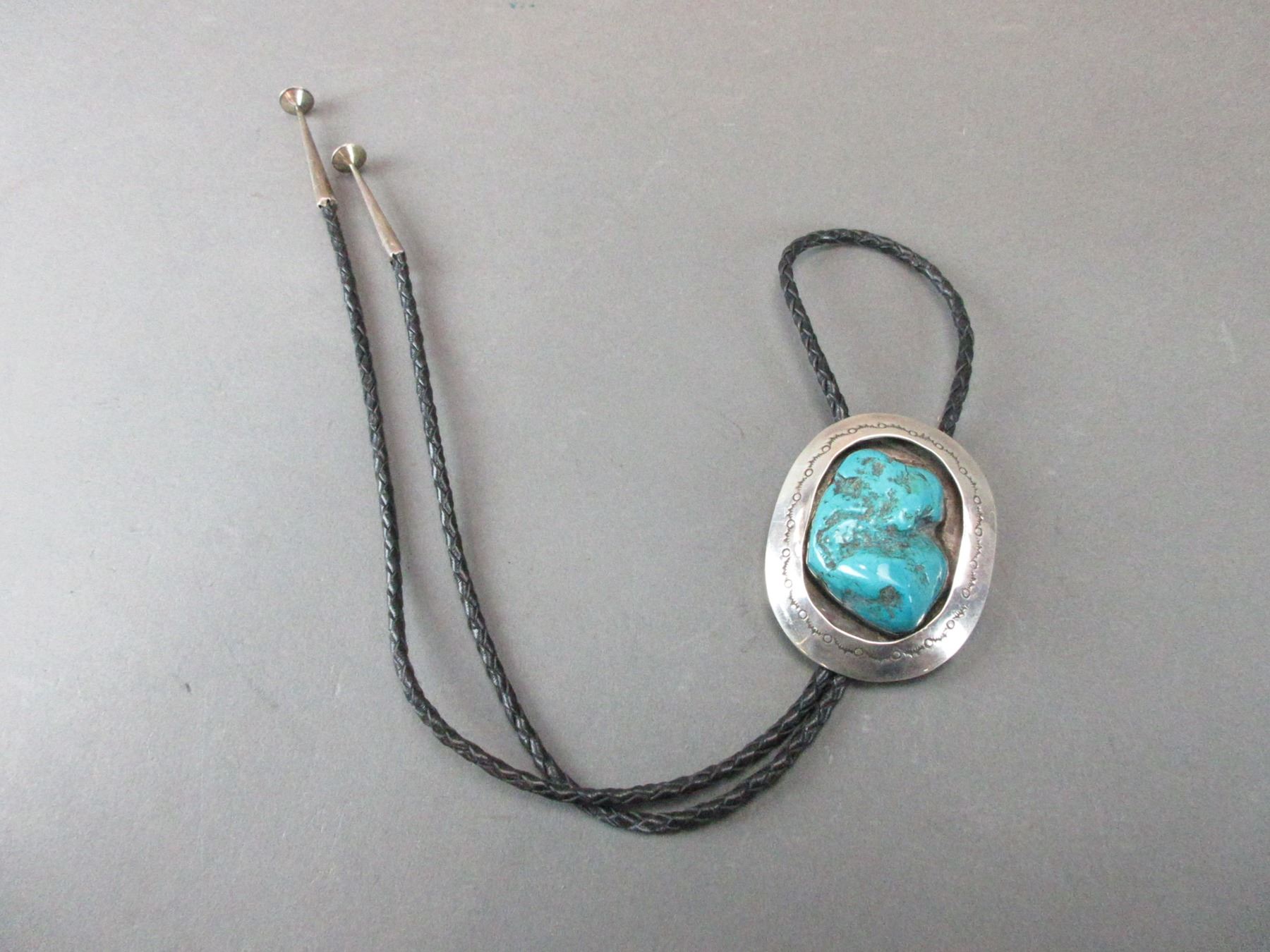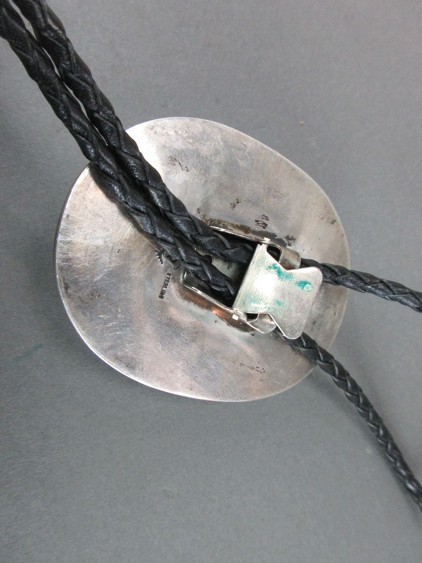 Large Turquoise Bolo Tie Marked MR Sterling- Turquoise- 1.75" X 1.5"
