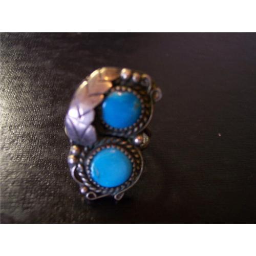 Very pretty turquoise ring with lots of design on it.On the back there is a mark of a big L and a smaller c.It is in very good condition and I would say the size is an 8 81/2.Beautiful ring.It measures 1 1/4" long.