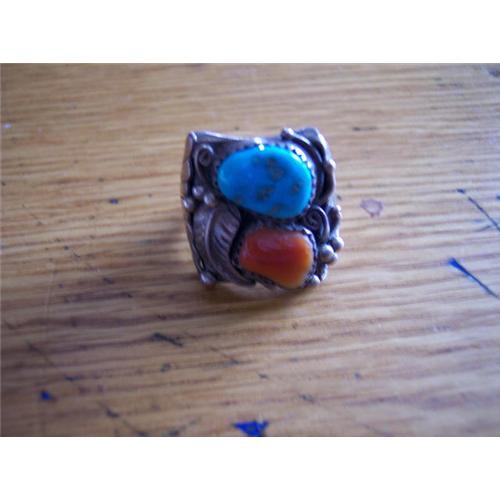 <tr><td>Title:Large Turquoise and Coral Ring</td></tr>