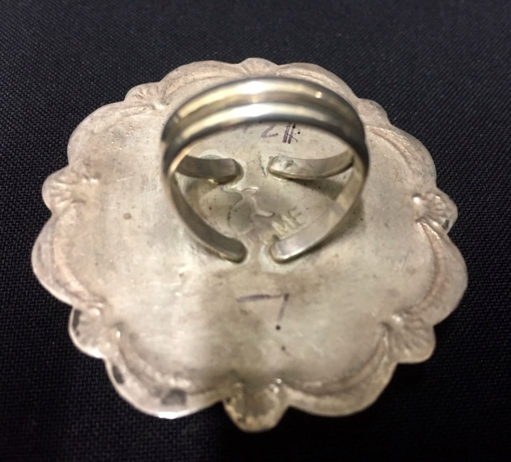 Maker: Red Rabbit Trading Co., Tucson, AZ. Approx. Age: Contemporary. Size: 7.5 and weighs 28.4g. Condition: Good. Additional Info: Sterling silver with a unique setting. Please look closely at the pictures - they are an important part of our description. Shipping: There will be a $5 handling / packaging fee for shipping this lot. The actual cost of postage will be added on top of that.