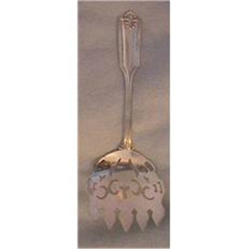 Talk about an exciting and rare piece! The relish fork, designed to serve and drain relish, is a seldom seen pierced serving fork. Note the beautiful tine area and piercings. The pattern is George Washington by Mount Vernon. This fork is 5 7/8" long and in extremely good unmonogrammed condition. Shipping to US addresses is $5.
