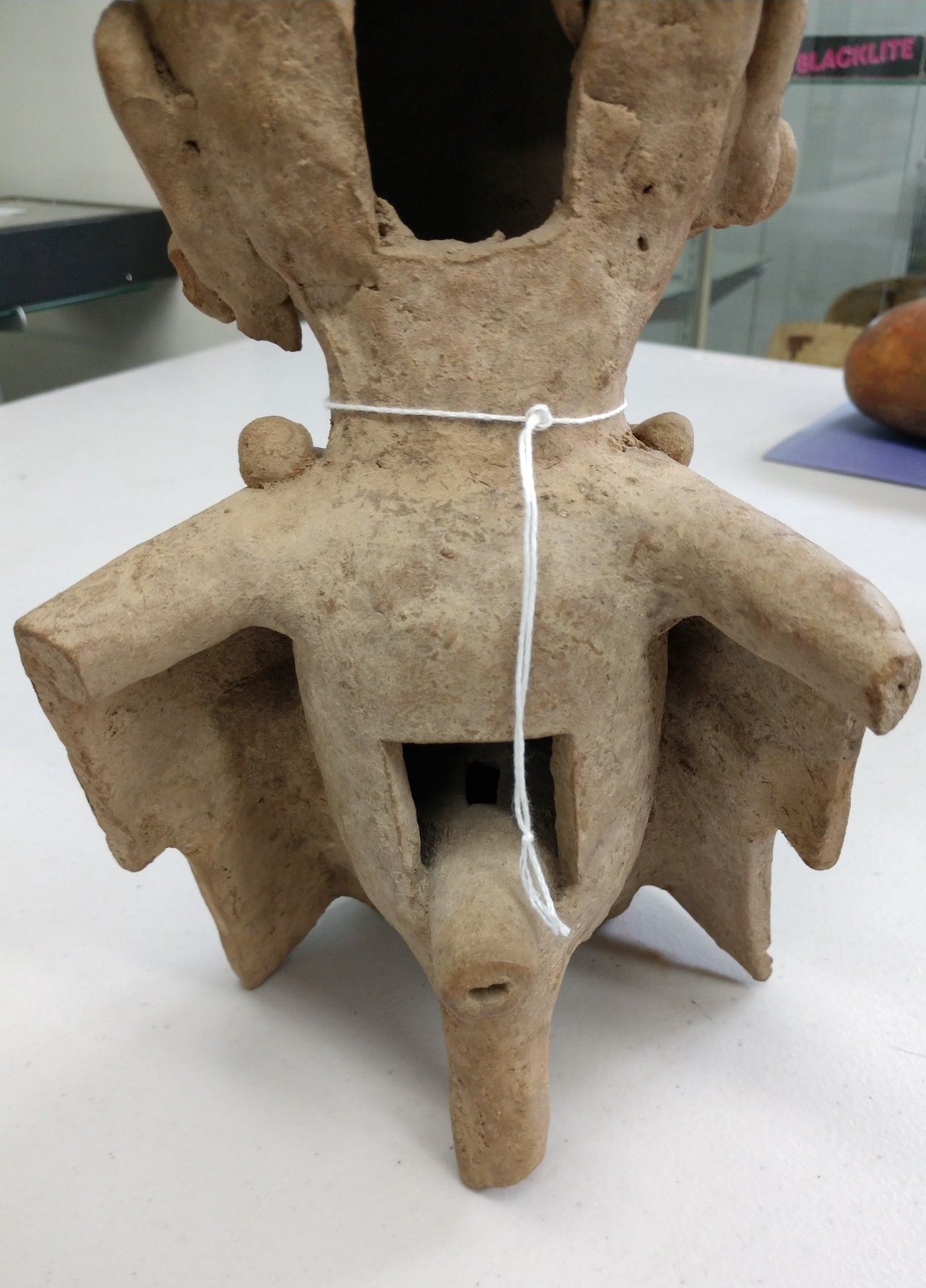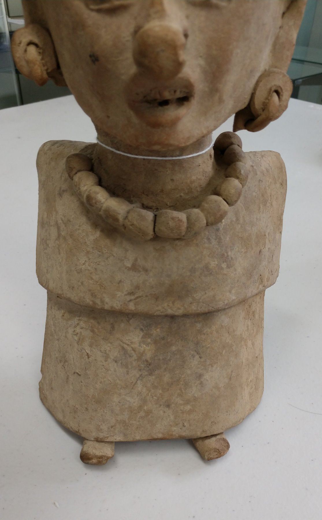 Large Veracruz Figure, c. 1000 years old. Made of clay, the item measures 10" x 6" x 6". Veracruz, Mexico. It is a whistle. From an old, 1960s California collection. Condition: Minor nicks, see images. Shipping: $65.00 USA estimate only, w/insurance and signature.