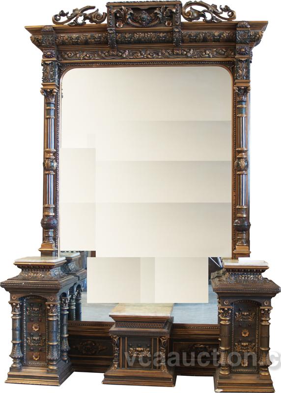 Large Victorian Mirror w/ 2 Side & 1 Center Pedestal, very ornate. 9-1/2' x 6'