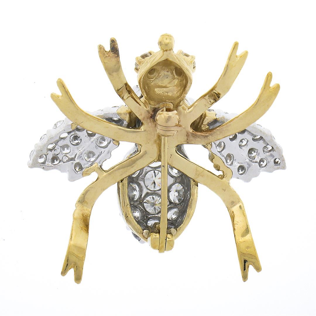 Large Vintage 14k TT Gold 3.0 ctw Round Diamond Covered Fly Bee Insect Brooch Pi