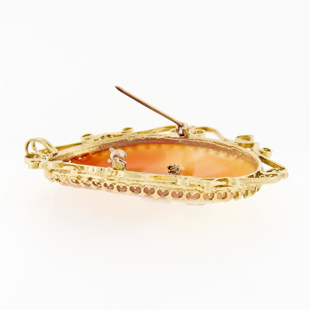 Large Vintage 14k TT Gold Carved Shell Cameo & Diamond Open Work Brooch Pendant