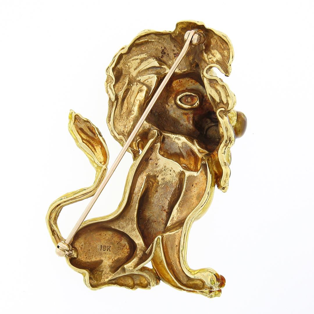 A vintage solid 18k yellow gold and enamel work large lion brooch. Measures 59.7x40.3mm and weighs a total of 48.80 grams.